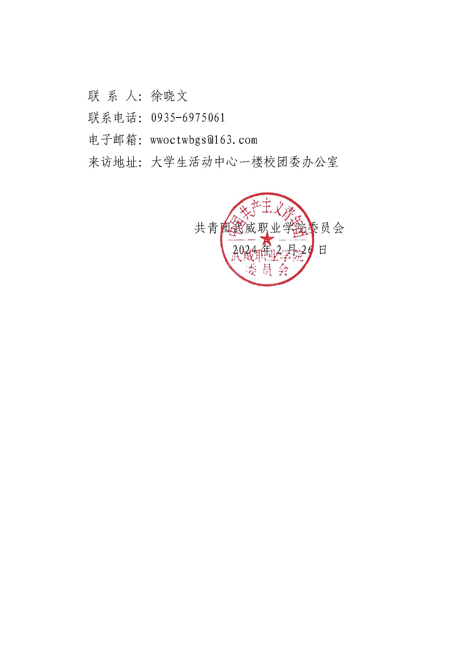 關(guān)于武威職業(yè)學(xué)院 2024年度優(yōu)秀共青團(tuán)員、優(yōu)秀…