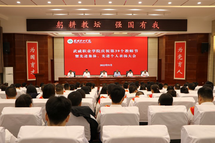 9月8日上午,在第39個教師節(jié)即將來臨之際,武威職業(yè)學院慶祝2023年教師節(jié)暨先進集體和先進個人表揚大會在菁英廳隆重舉行。學院黨委書記、校長趙明主持會議并講話,在家領(lǐng)導(dǎo)班子成員出席會議,中層管理干部、受表揚的教師和師生代表參加會議。