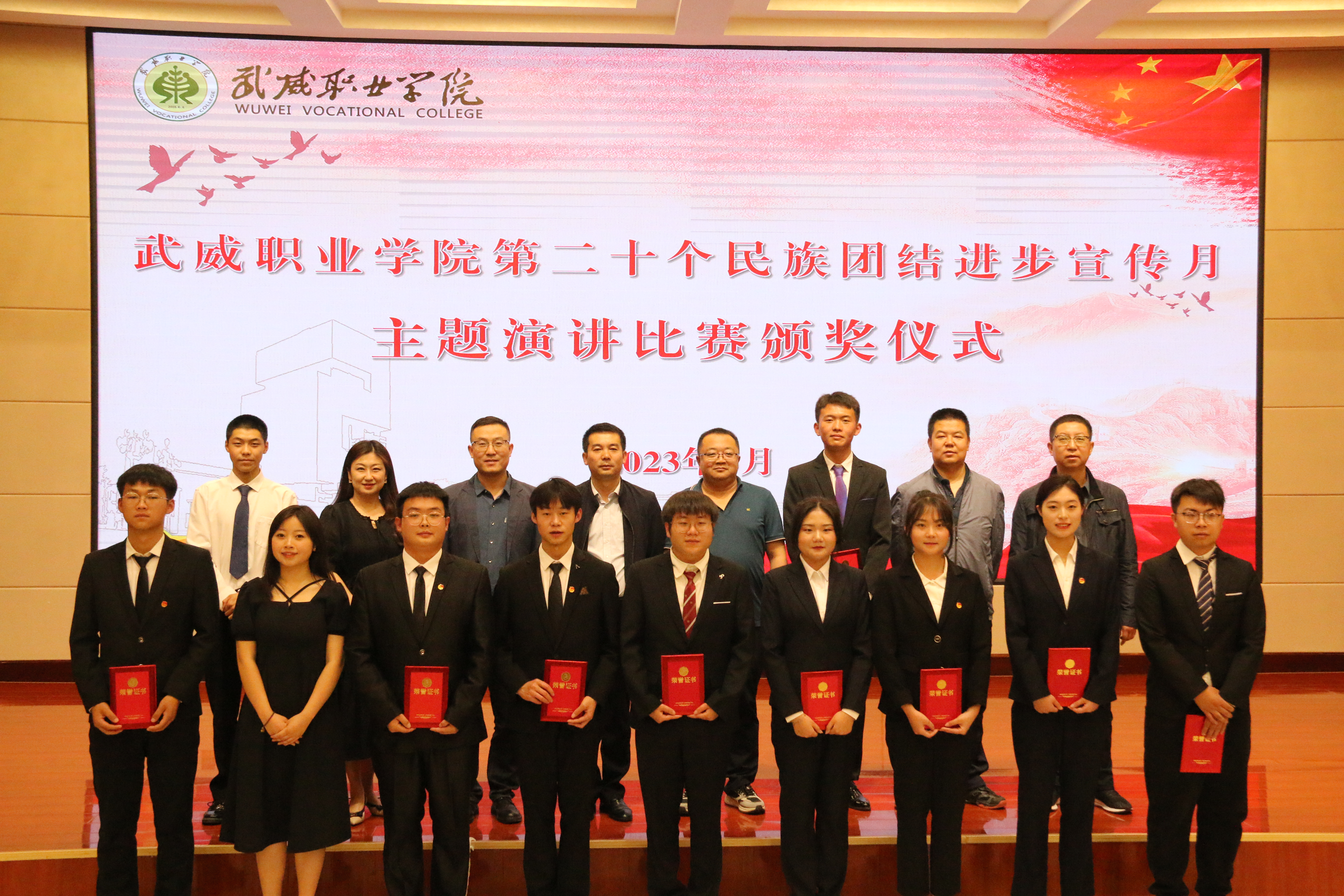 今年5月,是全省第20個(gè)民族團(tuán)結(jié)進(jìn)步宣傳月,為深入貫徹落實(shí)黨的二十大精神和習(xí)近平總書(shū)記關(guān)于加強(qiáng)和改進(jìn)民族工作的重要思想,全面落實(shí)中央和省市關(guān)于民族工作的部署要求,5月31日晚,學(xué)校在菁英廳舉行“深入學(xué)習(xí)宣傳貫徹黨的二十大精神,有形有感有效鑄牢中華民族共同體意識(shí)”主題演講比賽。各二級(jí)學(xué)院輔導(dǎo)員、師生代表200余人參加活動(dòng)。