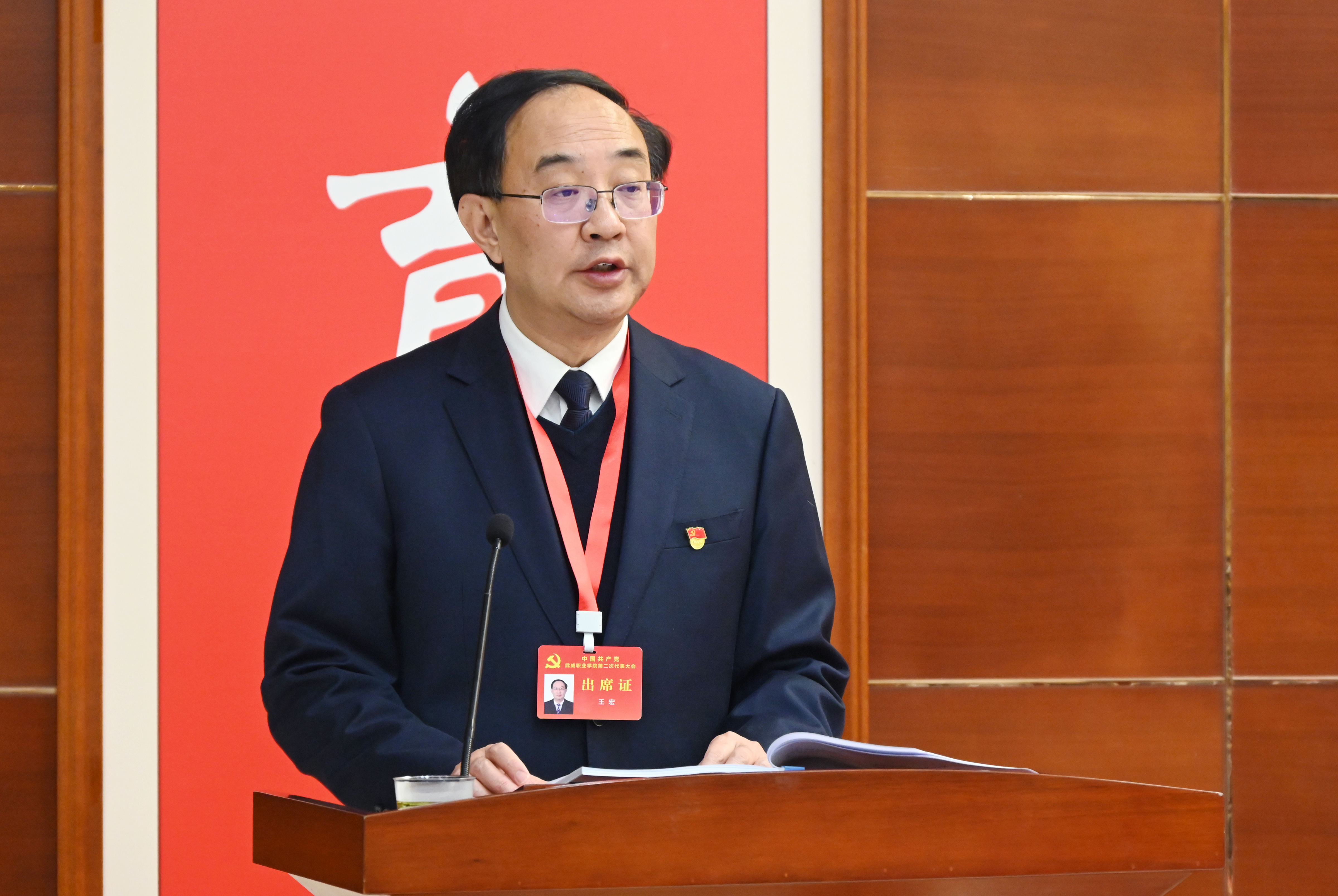 王宏同志代表中國共產黨武威職業(yè)學院第一屆委員會向大會作報告