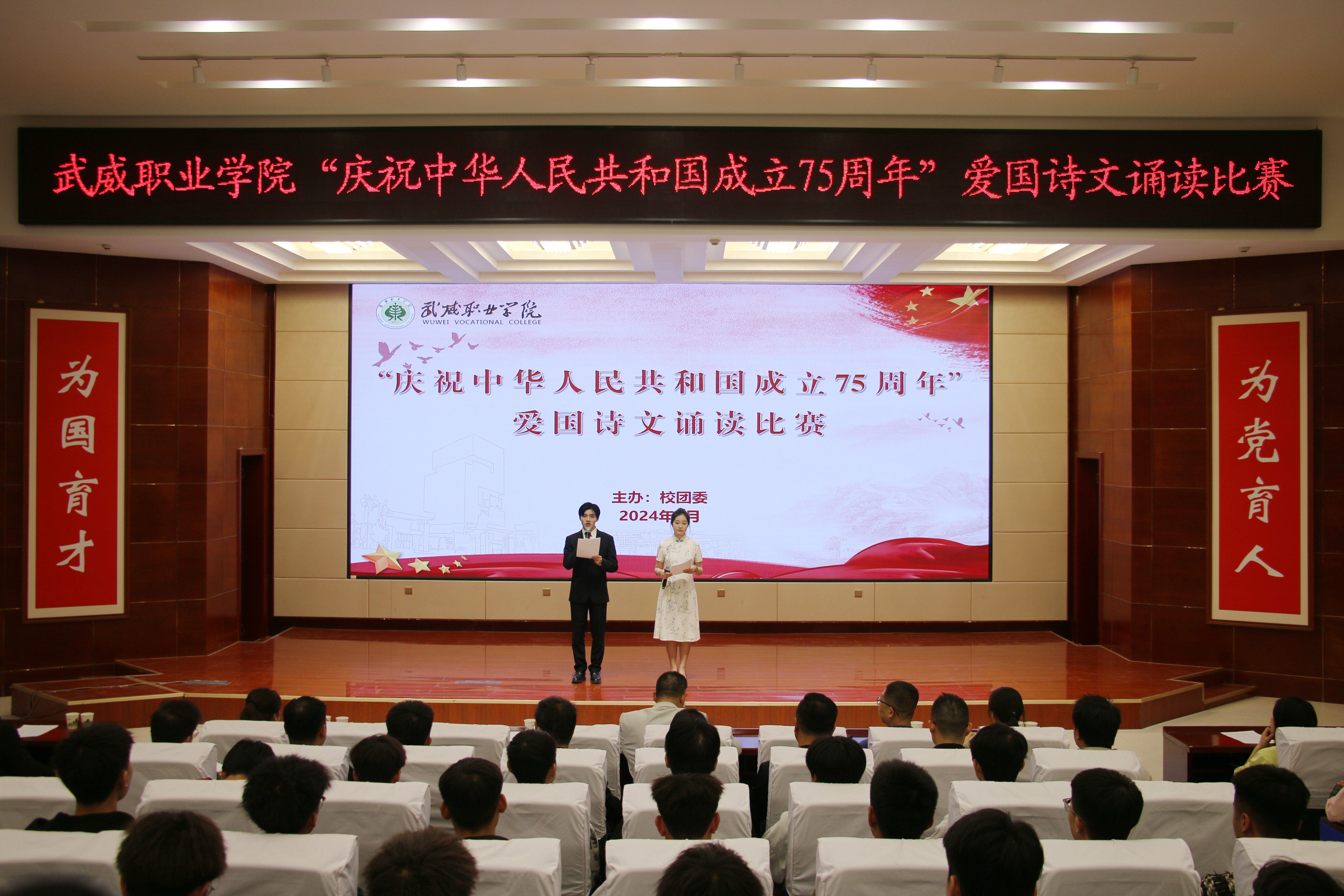 4月25日晚,學(xué)?!凹o(jì)念‘五四’運動105周年暨慶祝新中國成立75周年”愛國詩文誦讀比賽在菁英廳舉辦。黨委委員、副校長王守云出席活動,各二級學(xué)院團委書記及學(xué)生代表220余人觀看比賽。