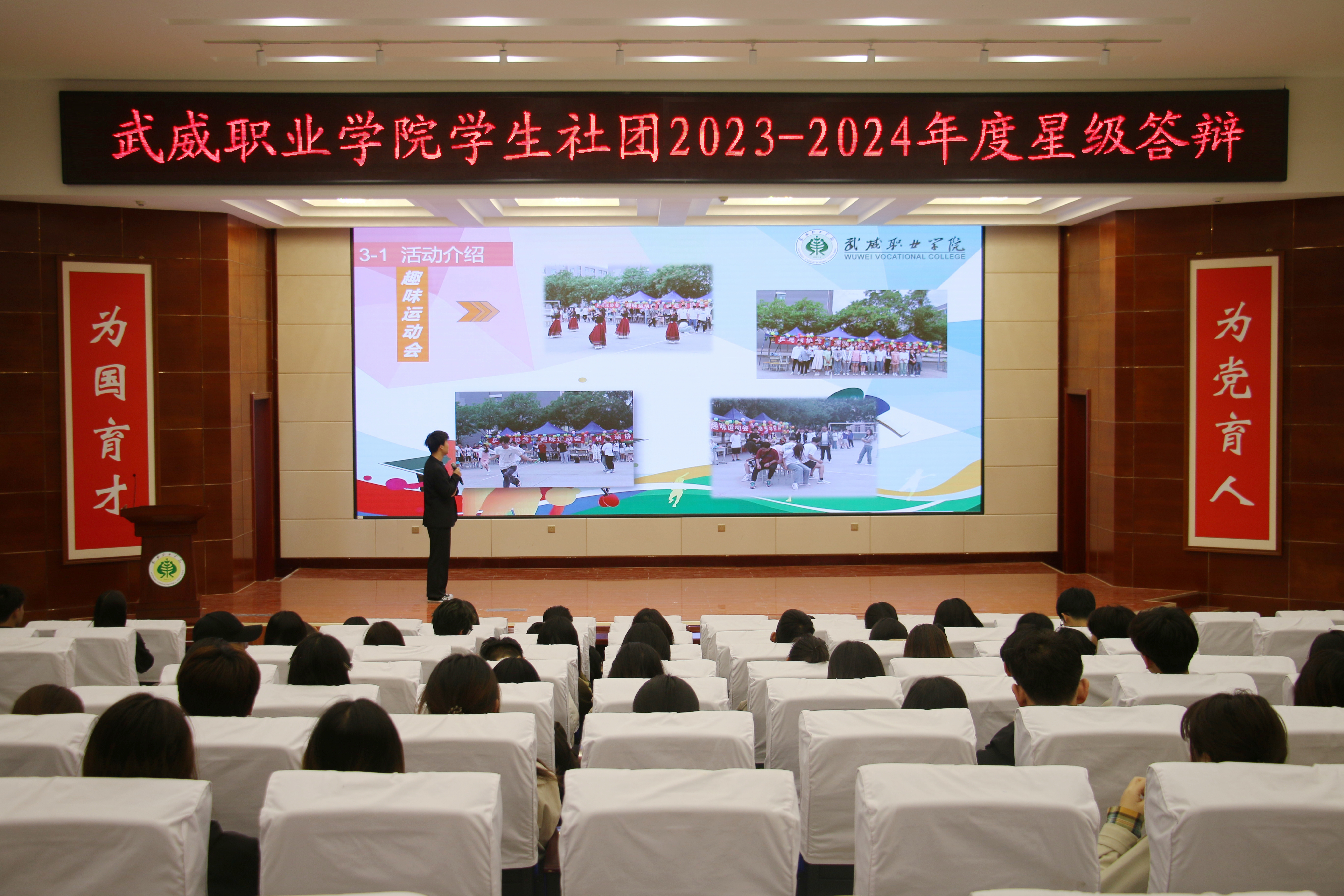 4月12日,學(xué)校在菁英廳舉辦了2023年度學(xué)生社團(tuán)星級答辯會(huì)。答辯現(xiàn)場,各學(xué)生社團(tuán)負(fù)責(zé)人通過PPT介紹了從基本情況、活動(dòng)開展、品牌創(chuàng)新以及未來規(guī)劃等方面進(jìn)行答辯展示。其中,新思想學(xué)習(xí)社、大學(xué)生攻鼓子藝術(shù)團(tuán)等思想引領(lǐng)類社團(tuán)展示了文化沙龍、藝術(shù)展演等活動(dòng)情況;藍(lán)天愛心協(xié)會(huì)、大學(xué)生就業(yè)創(chuàng)業(yè)促進(jìn)會(huì)等素質(zhì)拓展型社團(tuán)展示了愛心幫扶、就業(yè)創(chuàng)業(yè)等活動(dòng);青春健康同伴社、心翼心理協(xié)會(huì)等健康類社團(tuán)展示了健康防艾、心理咨詢等特色活動(dòng);朝陽武術(shù)協(xié)會(huì)、羽毛球協(xié)會(huì)、乒乓球協(xié)會(huì)等體育競技類社團(tuán)展示了促進(jìn)大學(xué)生健康和興趣培養(yǎng)方面的體育文化活動(dòng)。最后,通過現(xiàn)場答辯、審核資料、社團(tuán)互評等方面綜合考量,評選出五星級學(xué)生社團(tuán)2個(gè),四星級學(xué)生社團(tuán)4個(gè),三星級社團(tuán)6個(gè)。