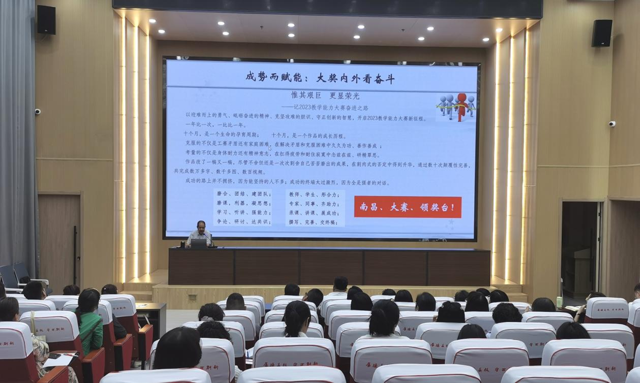 報告會上,翟存祥以2023年學(xué)校團隊在國賽的獲獎作品為例,從對標(biāo)標(biāo)準(zhǔn)、汲取經(jīng)驗、團隊組建、內(nèi)容選題、人培完善、課標(biāo)修訂、教學(xué)實施、教案撰寫、課堂實錄、賽場答辯等十個方面進行了詳盡細(xì)致的剖析講解。