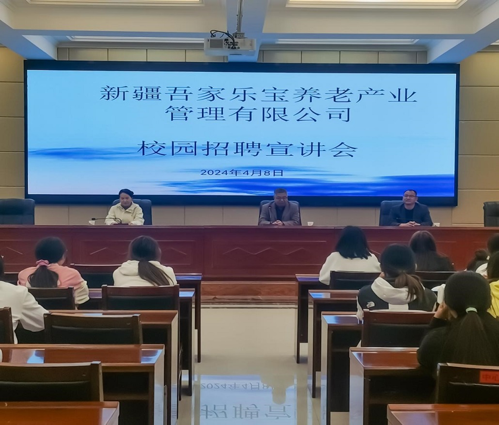 新疆吾家樂寶養(yǎng)老產(chǎn)業(yè)管理有限公司來學(xué)校開展實習(xí)就業(yè)宣講活動