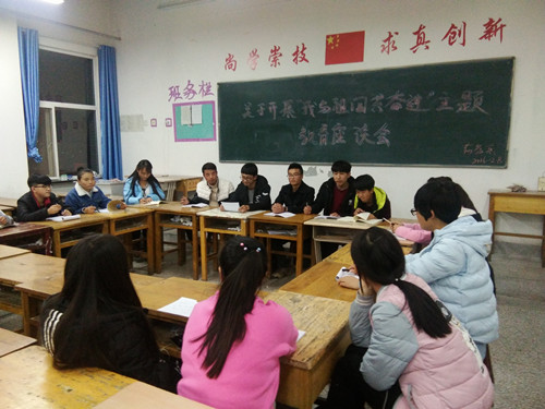 通過組織各班團干部開展 “我與祖國共奮進”主題座談會,讓團干部們對歷史有了深刻的了解,也讓同學們在這次座談會中深刻領(lǐng)悟到身為中華兒女要勿忘恥辱,為實現(xiàn)中華民族偉大復(fù)興的中國夢而勤奮學習。同時,各班團支部以形式多樣的主題團會,表達出為了實現(xiàn)“中國夢”,讓屈辱的歷史不再重演,將要萬分珍惜今天這來之不易的和平生活,努力學習,不斷進取。