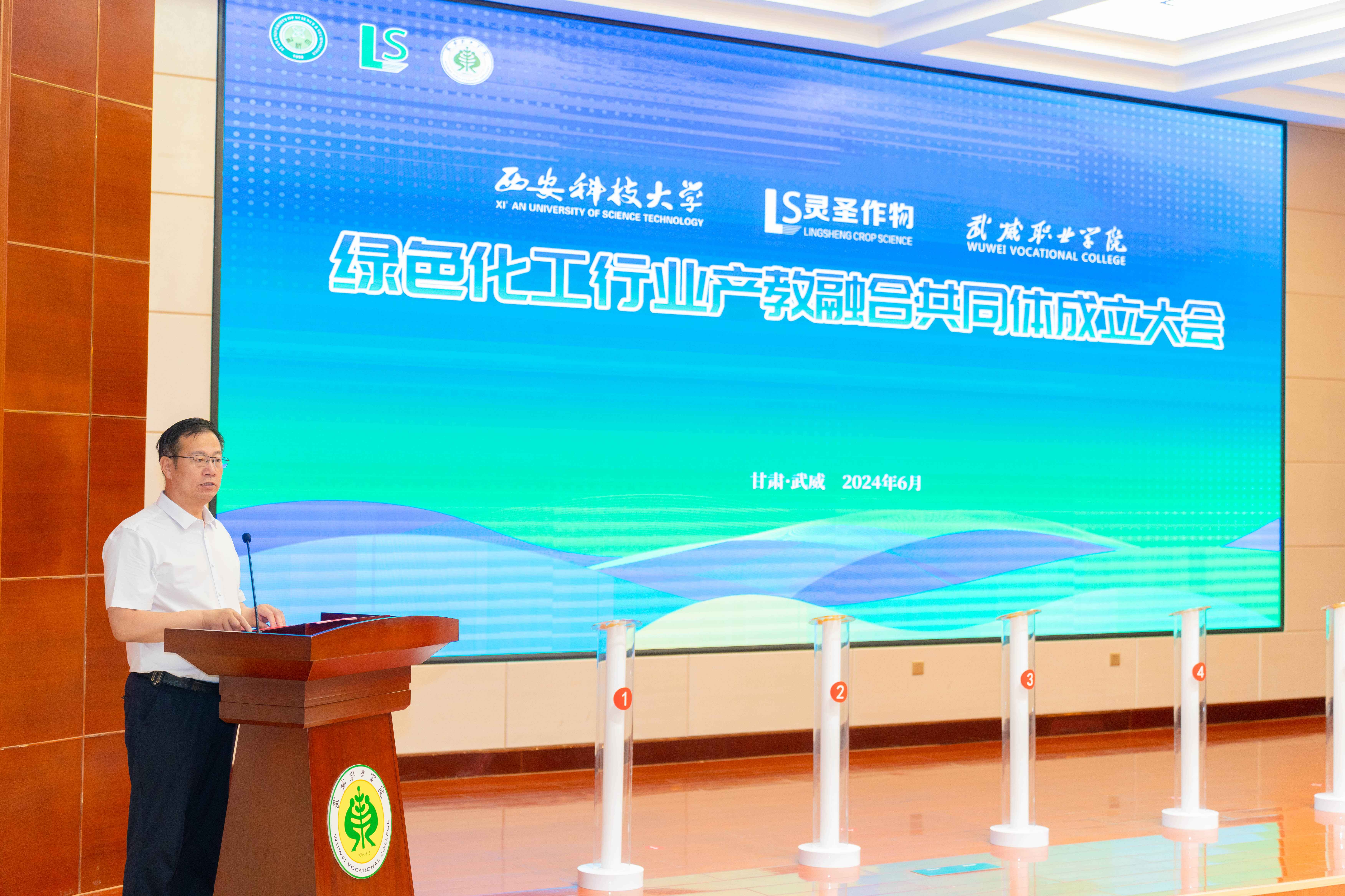 6月21日,綠色化工行業(yè)產(chǎn)教融合共同體成立大會在武威職業(yè)學院舉行,此次大會由內(nèi)蒙古靈圣作物科技有限公司、西安科技大學和武威職業(yè)學院牽頭,聯(lián)合科研院所、本科院校、中高職院校、行業(yè)協(xié)會及上下游企業(yè)等52家單位共同成立。