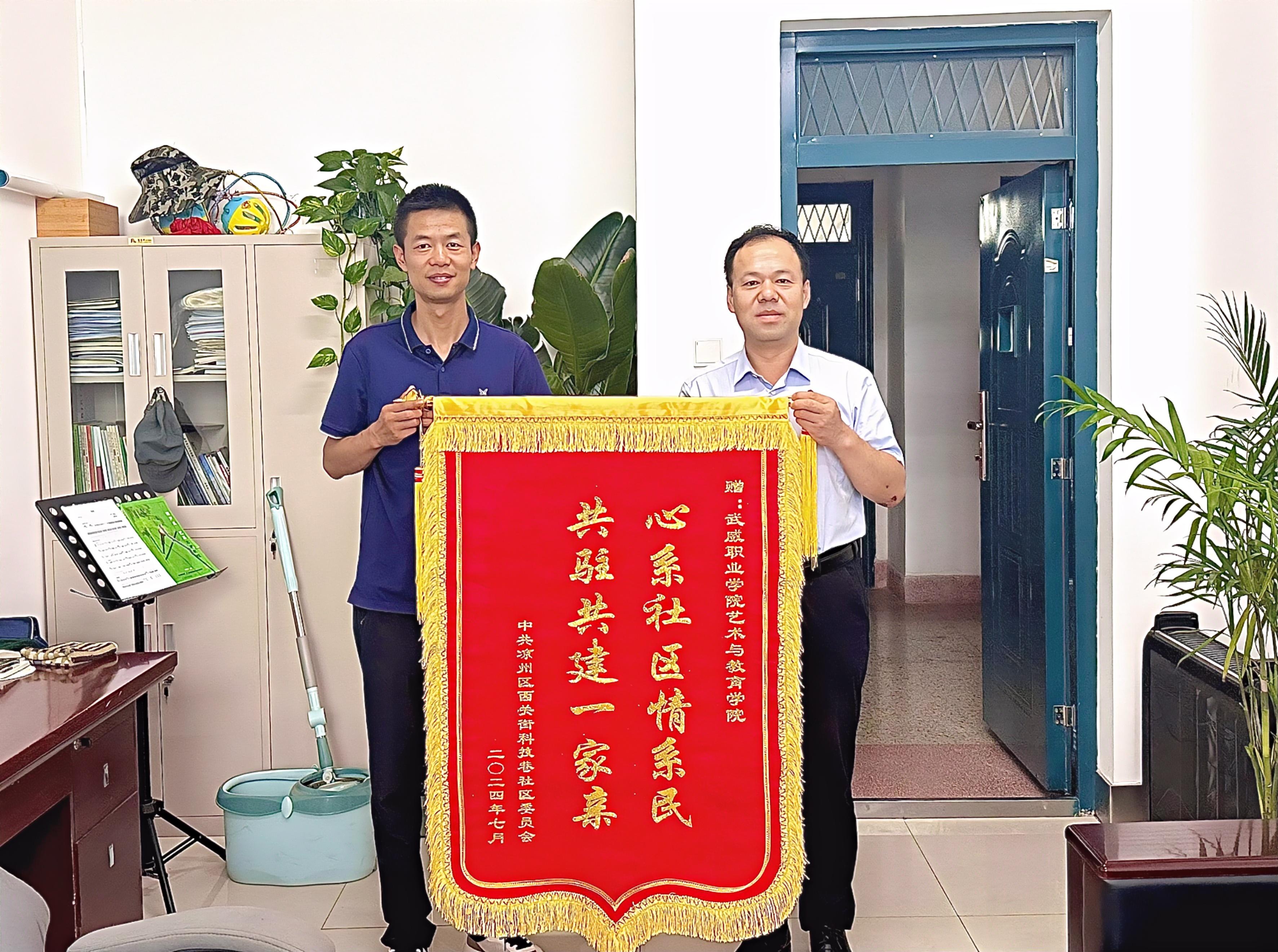 一份榮譽,一份信任,一份鼓勵。此次贈旗是對我院在西關(guān)科技巷社區(qū)開展社會實踐活動成果的充分肯定,有助于進一步調(diào)動學(xué)生參與社會實踐活動的積極性,教育引導(dǎo)學(xué)生在社會課堂中“受教育、展才干、作貢獻(xiàn)”。下一步,我院將深入推進學(xué)生志愿服務(wù)活動,為基層社會治理和文明武威高質(zhì)量發(fā)展添磚加瓦!