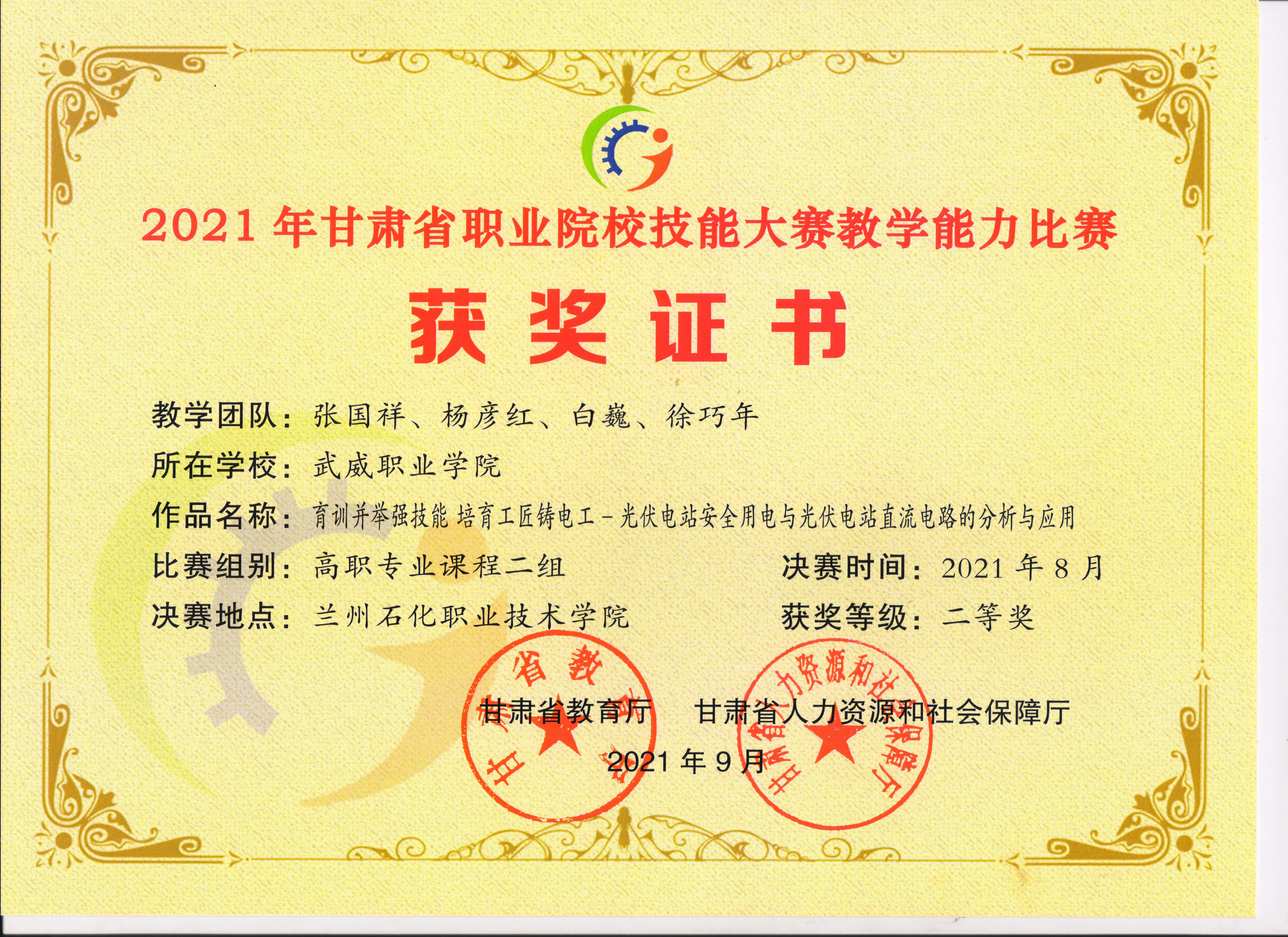 2021年甘肅省職業(yè)院校技能大賽教學(xué)能力大賽比賽結(jié)果
