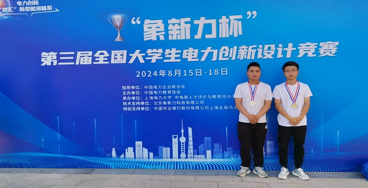 8月15-18日,“象新力杯”第三屆全國(guó)大學(xué)生電力創(chuàng)新設(shè)計(jì)競(jìng)賽總決賽在上海電力大學(xué)(臨港校區(qū))圓滿舉行。來(lái)自全國(guó)114所高校的289支團(tuán)隊(duì)共計(jì)1500余人共同參與,經(jīng)過(guò)線上線下,匯聚智慧、碰撞創(chuàng)意、交流成果、比拼才能,我校工程技術(shù)學(xué)院參賽的2名同學(xué)獲決賽二等獎(jiǎng)。