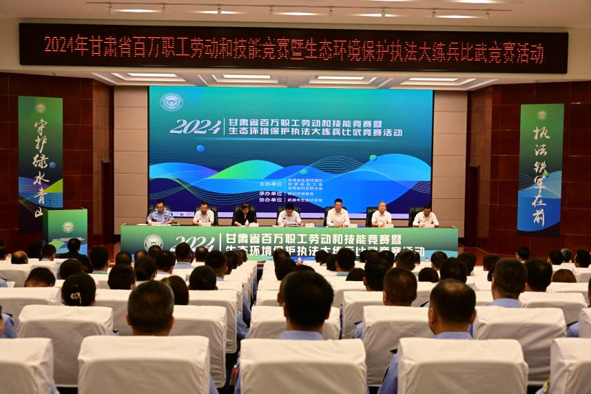 9月3日上午,由甘肅省生態(tài)環(huán)境廳、甘肅省總工會、甘肅省婦女聯(lián)合會主辦,武威市生態(tài)環(huán)境局協(xié)辦的甘肅省生態(tài)環(huán)境保護執(zhí)法大練兵比武競賽活動在學校菁英廳開幕,甘肅省生態(tài)環(huán)境廳副廳長劉文璽、省司法廳副廳長何雯、省婦聯(lián)一級巡視員崔海華、武威市人民政府副市長陳一夫、市生態(tài)局局長張有恒、學校黨委書記王宏、校長、黨委副書記張開禮,省生態(tài)環(huán)境廳、省總工會、省婦聯(lián)、省司法廳、武威市人民政府有關(guān)領(lǐng)導,省生態(tài)環(huán)境廳機關(guān)處室、直屬單位相關(guān)負責同志,武威市生態(tài)環(huán)境局、學校考試培訓中心等單位負責同志共100余人參加了開幕式。