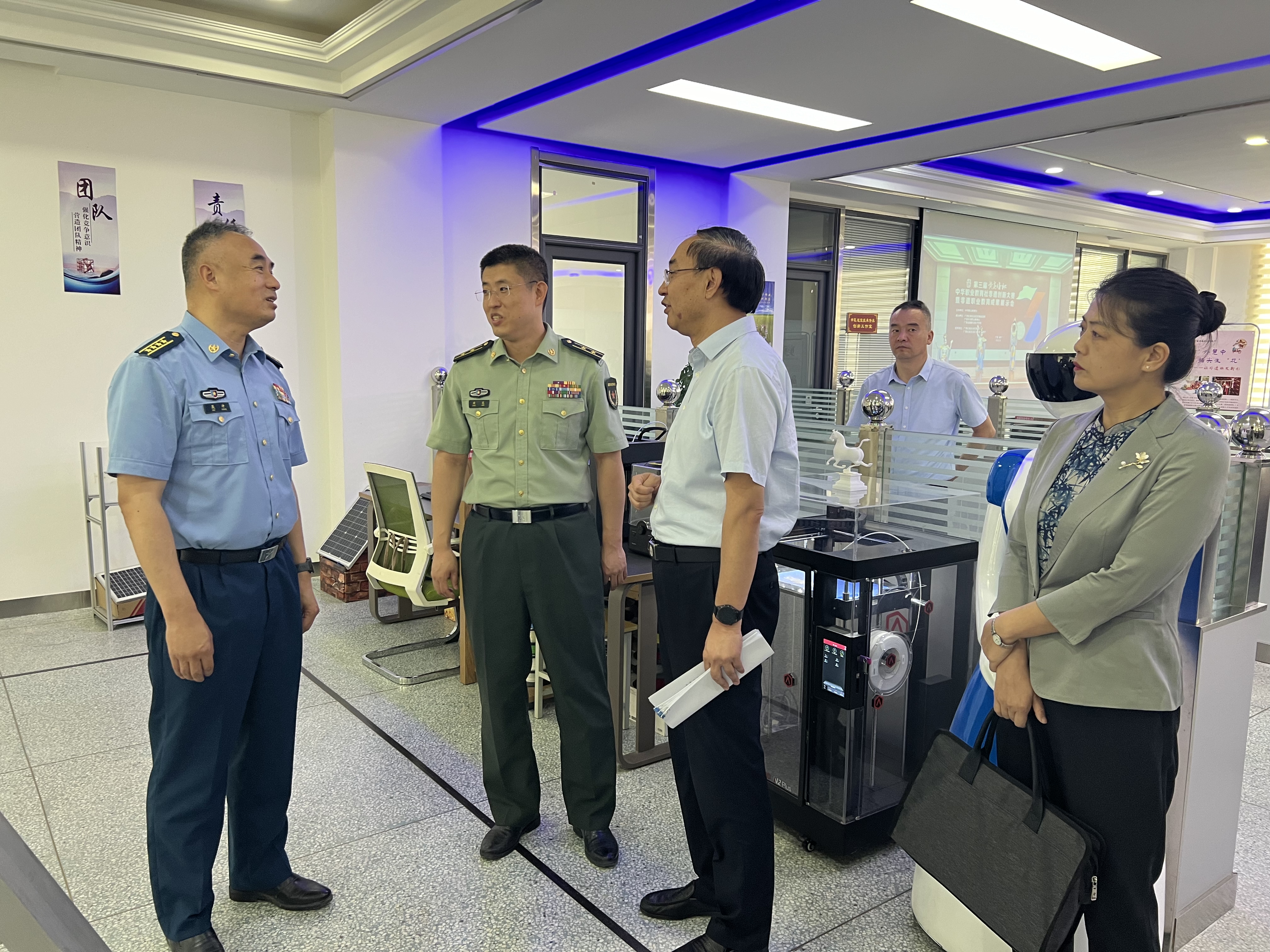 工作組一行參觀了學(xué)校征兵工作站,查看了近年來(lái)征兵工作相關(guān)資料,并參觀了學(xué)校創(chuàng)新創(chuàng)業(yè)學(xué)院、體育場(chǎng)和工程技術(shù)學(xué)院智能制造實(shí)訓(xùn)中心。參觀結(jié)束后,在學(xué)校能源樓一樓會(huì)議室向工作組匯報(bào)了學(xué)校貫徹落實(shí)《兵役法》的具體措施,取得的成效以及下一步打算。工作組對(duì)學(xué)校黨委領(lǐng)導(dǎo)重視貫徹落實(shí)《兵役法》和征兵工作給予高度肯定!對(duì)學(xué)校近兩年超額完成征兵任務(wù)表示衷心感謝!希望學(xué)校繼續(xù)做好兵役征集工作,為部隊(duì)輸送高質(zhì)量的優(yōu)秀兵源。
