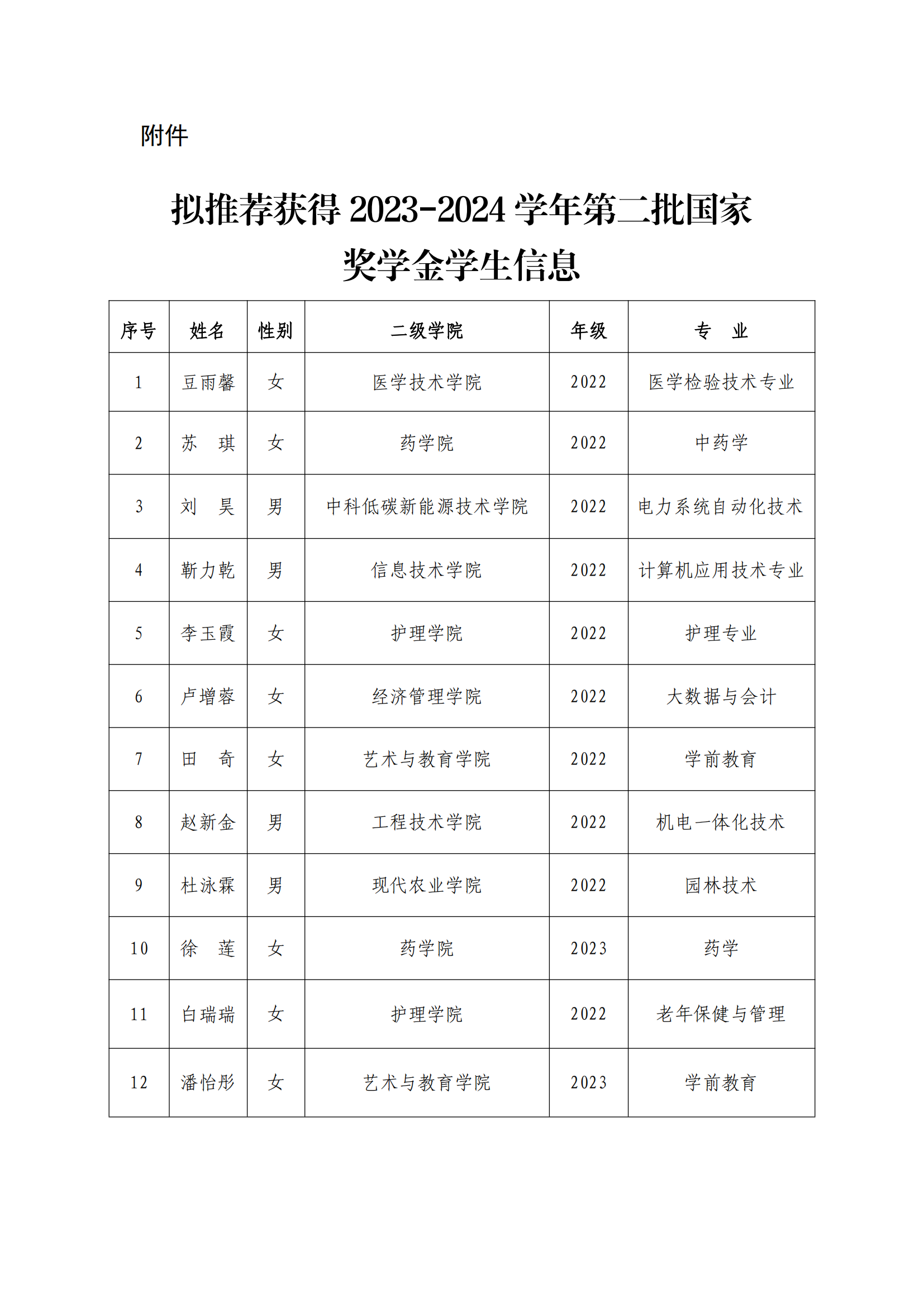武威職業(yè)學(xué)院關(guān)于2023-2024學(xué)年國家勵(lì)志獎(jiǎng)學(xué)金候選人的公示