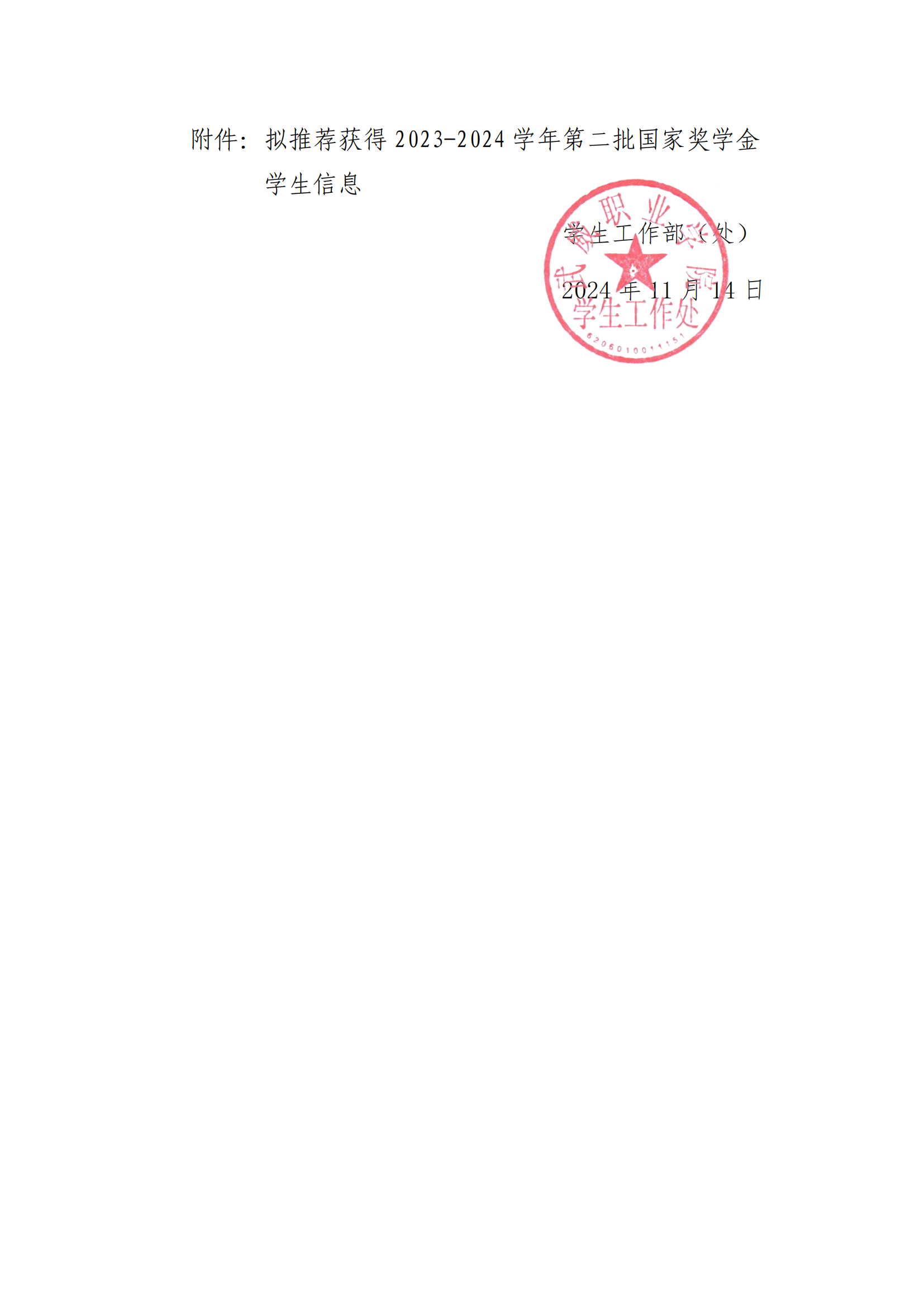 武威職業(yè)學(xué)院關(guān)于2023-2024學(xué)年第二批國家獎(jiǎng)學(xué)金擬獲得者的公示