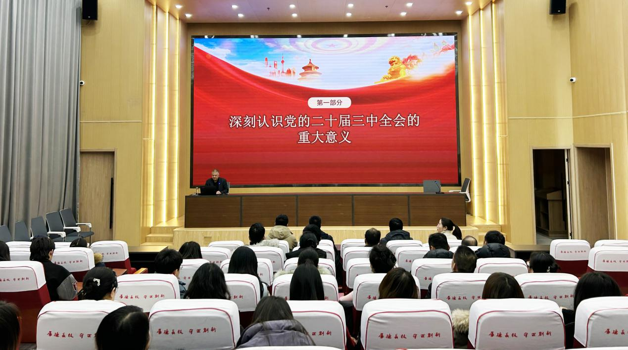 1月3日下午,黨委委員、副校長(zhǎng)王守云在能源科技樓學(xué)術(shù)報(bào)告廳為藝術(shù)與教育學(xué)院、經(jīng)濟(jì)管理學(xué)院師生帶來(lái)了一場(chǎng)生動(dòng)而有深度的專(zhuān)題黨課報(bào)告會(huì),深入解讀黨的二十屆三中全會(huì)精神和習(xí)近平總書(shū)記視察甘肅重要講話重要指示精神。兩學(xué)院黨員、預(yù)備黨員、入黨積極分子、師生代表共100余人參加。
