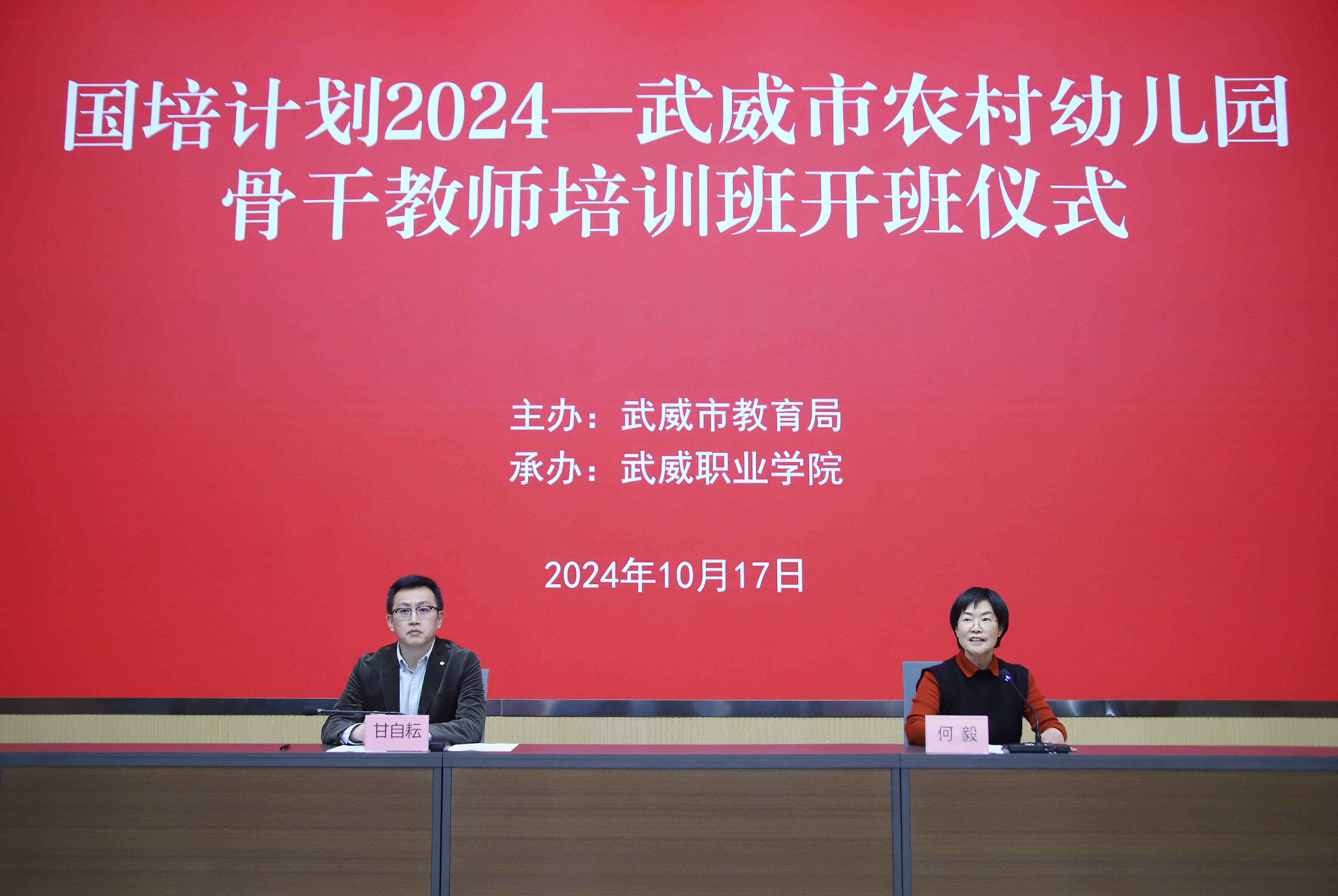 10月17日上午,由武威市教育局主辦,我校承辦的“國(guó)培計(jì)劃(2024)”—武威市農(nóng)村幼兒園骨干教師培訓(xùn)班在能源科技樓一樓報(bào)告廳順利開班,來(lái)自我市各農(nóng)村幼兒園的80名骨干教師參加培訓(xùn)。武威市教育局黨組成員、副局長(zhǎng)甘自耘出席開班儀式。學(xué)校黨委委員、副校長(zhǎng)何毅主持開班儀式。