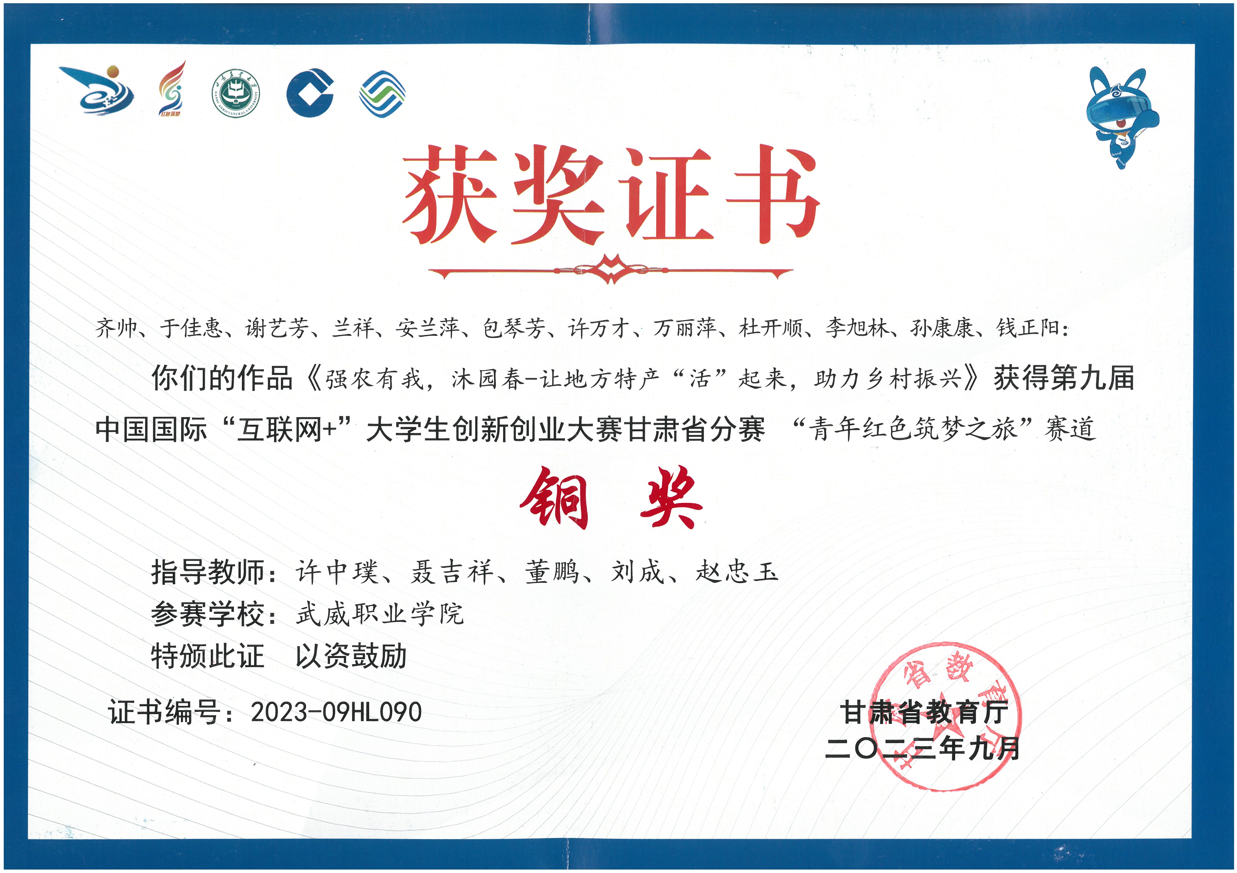 學(xué)生獲第九屆中國國際“互聯(lián)網(wǎng)+”大學(xué)生創(chuàng)新創(chuàng)業(yè)大賽甘肅賽區(qū)銅獎