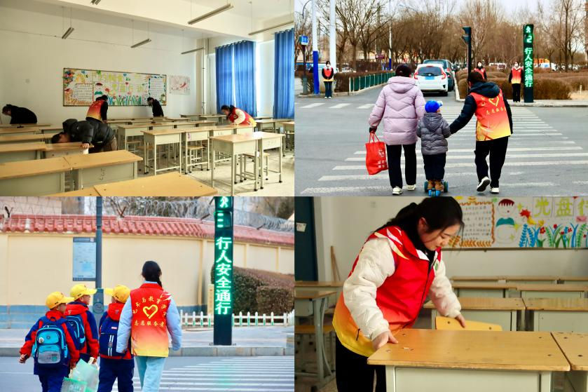 當(dāng)天中午,志愿者們利用午休時(shí)間開展了教室環(huán)境大掃除行動(dòng)。對(duì)教學(xué)樓、琴房、公共區(qū)域進(jìn)行全面清潔。從擦拭玻璃到清理衛(wèi)生死角,志愿者們干勁十足,用實(shí)際行動(dòng)讓教室“煥新顏”。下午,利用課余時(shí)間,志愿者們身著紅色馬甲,手持文明勸導(dǎo)旗,分赴校園周邊人流密集的交通路口開展文明勸導(dǎo)服務(wù)。同學(xué)們化身“臨時(shí)交通協(xié)管員”,引導(dǎo)行人遵守交通規(guī)則,勸阻闖紅燈、亂穿馬路等不文明行為,并主動(dòng)攙扶行動(dòng)不便的老人、協(xié)助家長(zhǎng)護(hù)送兒童安全過馬路。?