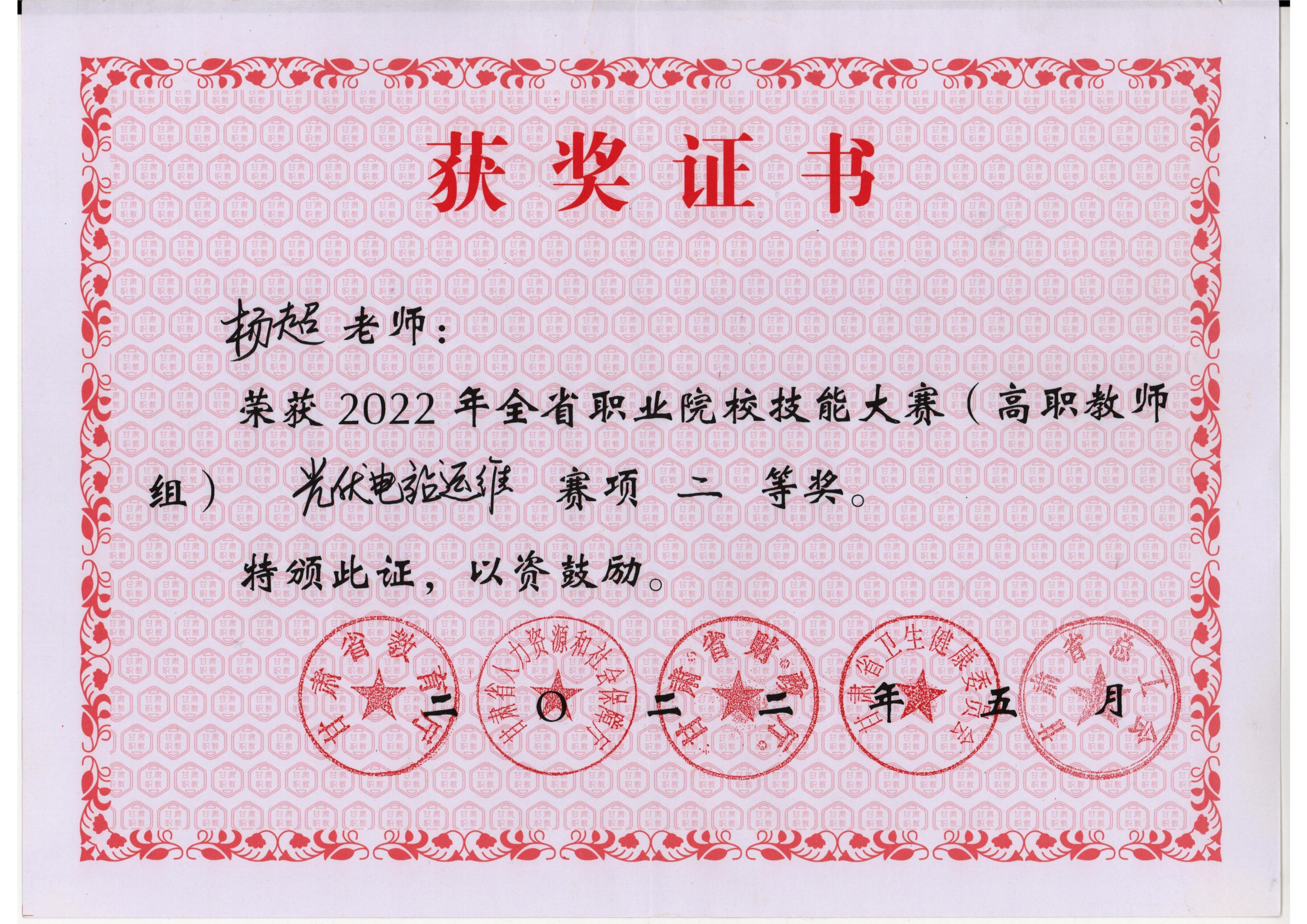 2022年甘肅省職業(yè)院校技能大賽光伏電站運維賽項(高職教師組)獲獎情況