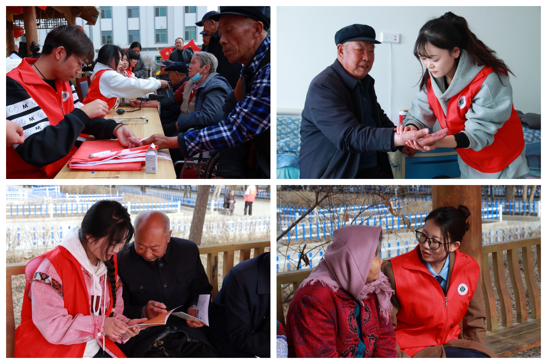 在健康慰問環(huán)節(jié),護理學院志愿者結合專業(yè)特色,分組為老人測量血壓、血糖,并耐心給老人講解養(yǎng)生知識,告知在日常生活起居中的注意事項,以專業(yè)技能守護老人健康。