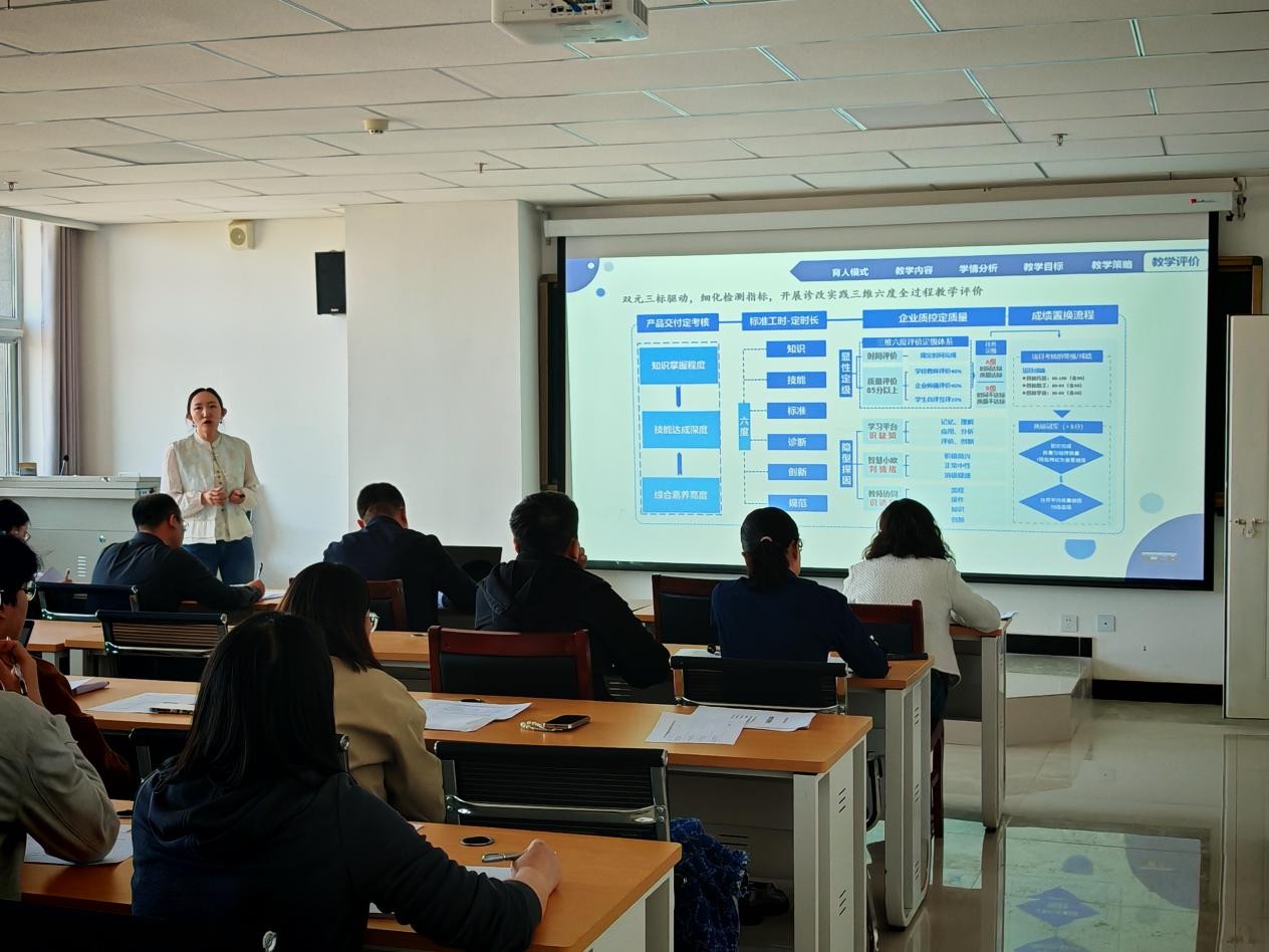 此次大賽共有6個(gè)參賽隊(duì)參加。大賽依據(jù)專業(yè)課程特點(diǎn),劃分了專業(yè)課程一組、專業(yè)課程二組兩個(gè)參賽組別。比賽現(xiàn)場(chǎng),緊張而熱烈的氛圍彌漫在每一個(gè)角落。各參賽隊(duì)嚴(yán)格按照省賽的高標(biāo)準(zhǔn)要求,依次完成教學(xué)實(shí)施報(bào)告、無生授課及答辯三個(gè)關(guān)鍵環(huán)節(jié)。在教學(xué)實(shí)施報(bào)告環(huán)節(jié),參賽教師們猶如運(yùn)籌帷幄的將領(lǐng),用清晰的邏輯、詳實(shí)的數(shù)據(jù)和深刻的教學(xué)反思,闡述著自己對(duì)于課程的理解與設(shè)計(jì)。他們不僅展示了教學(xué)目標(biāo)的精準(zhǔn)設(shè)定、教學(xué)內(nèi)容的合理組織,更分享了在教學(xué)過程中如何運(yùn)用創(chuàng)新方法激發(fā)學(xué)生的學(xué)習(xí)興趣和潛能。