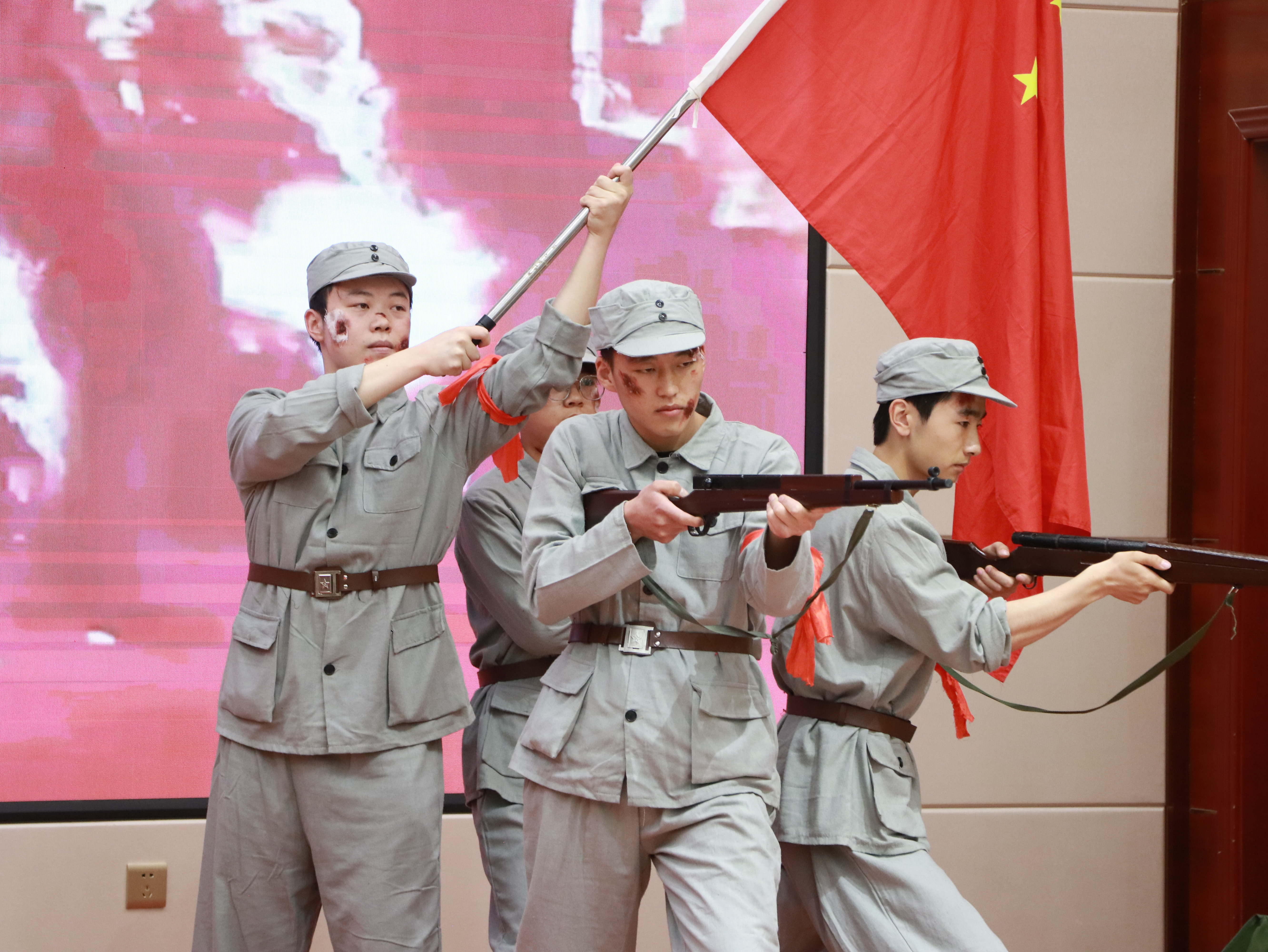 比賽現(xiàn)場,各參賽隊伍以“誦、演、歌、頌”的復合表達,帶領觀眾穿越歷史烽煙,重現(xiàn)那段氣壯山河的抗戰(zhàn)歲月。他們或慷慨激昂地講述革命先輩寧死不屈的壯舉,或手持泛黃家書深情誦讀,絕筆信中的母愛與家國大義在顫抖的聲線中重現(xiàn);或化身硝煙中的戰(zhàn)士,用染血繃帶與折斷鋼槍演繹出“十萬青年十萬軍”的悲壯群像。那些被歲月蝕刻的墨跡,此刻正在當代青年的瞳孔里重新燃燒。一句句飽含深情的誦讀,一幕幕震撼人心的演繹,都傳遞著同學們對抗戰(zhàn)英烈的深切緬懷與崇高敬意。現(xiàn)場掌聲如潮水般此起彼伏,經(jīng)久不息,激蕩著每一位觀眾的愛國情懷。