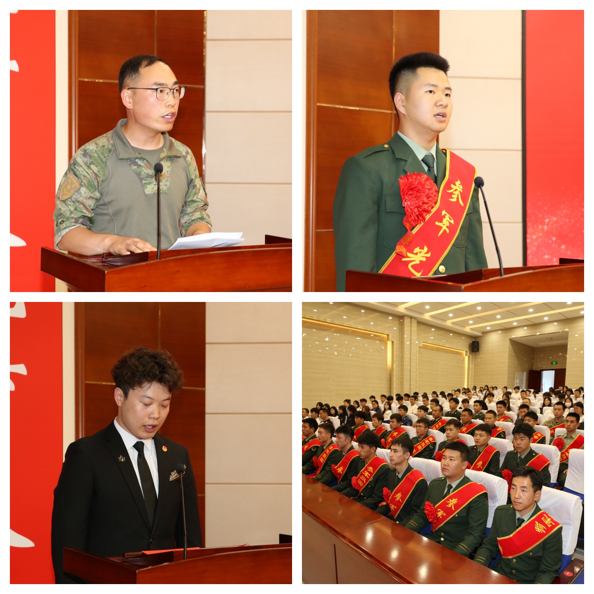 活動現(xiàn)場為2024—2025學年退役復學大學生舉行了歡迎儀式,并為他們頒發(fā)“退役復學軍人榮譽證牌”。退役復學大學生代表、醫(yī)學技術學院2024級針灸推拿大專(2)班周榮臻同學講述了軍旅生涯的磨煉和成長感悟,并號召青年大學生積極報名參軍;2025年應征報名大學生代表、藥學院2024級藥學大專(1)班劉鑫同學宣讀了參軍入伍倡議書;駐武部隊優(yōu)秀大學生軍官代表符東洋少校分享了自己在部隊的成長經(jīng)歷。