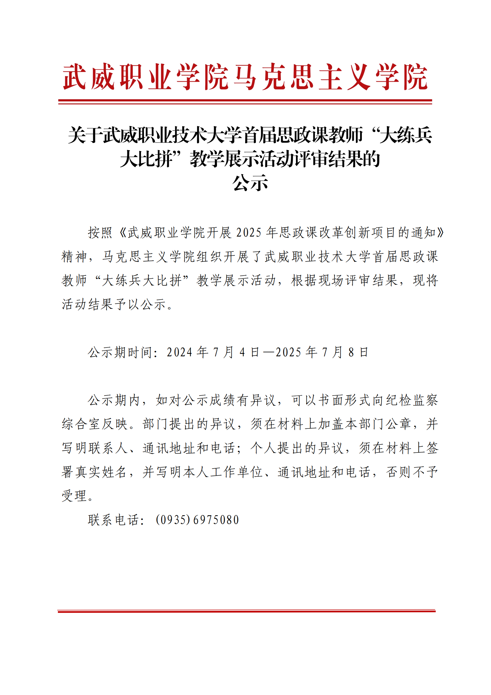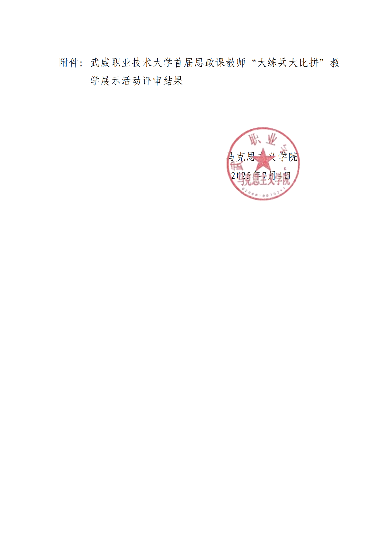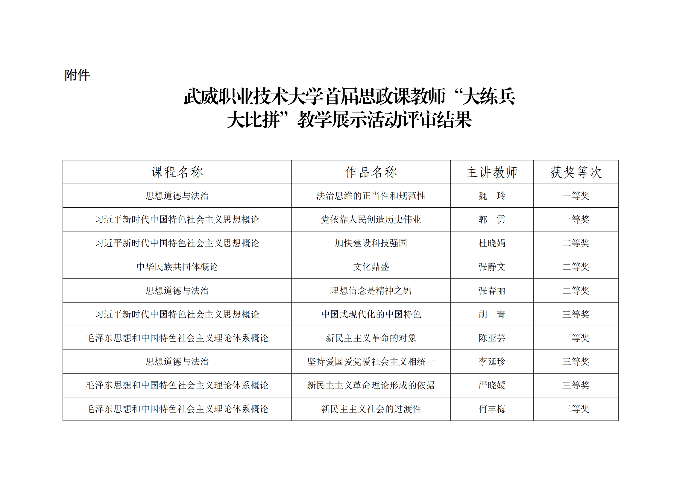 武威職業(yè)技術(shù)大學(xué)首屆思政課教師“大練兵大比拼”教學(xué)展示活動(dòng)評審結(jié)果的公示