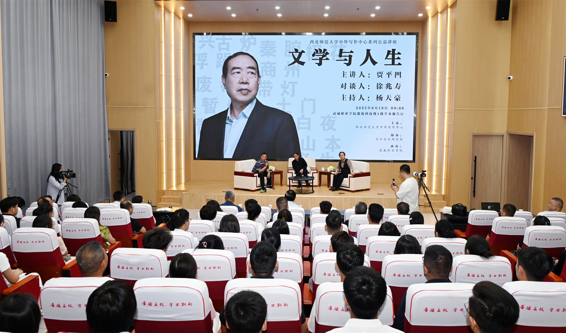 近日,西北師范大學中外寫作中心武威基地“文學與人生”公益講座在武威職業(yè)技術(shù)大學舉辦。著名作家、西北師范大學特聘教授賈平凹擔任主講嘉賓,寫作中心常務副主任徐兆壽教授擔任對談嘉賓,與師生共赴一場思想文化盛宴。講座由西北師范大學中外寫作中心副主任楊天豪主持。