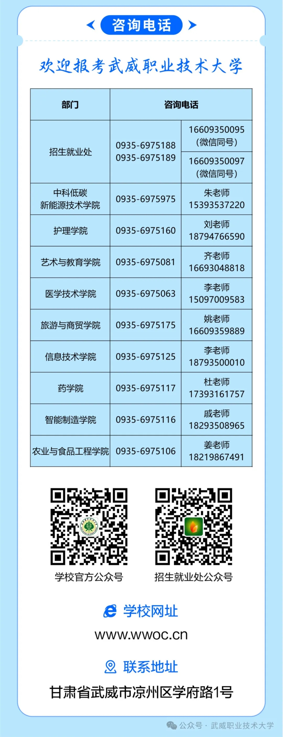 版權(quán)所有 ?武威職業(yè)技術(shù)大學(xué) 地址:甘肅省武威市涼州區(qū)西關(guān)街學(xué)府路1號