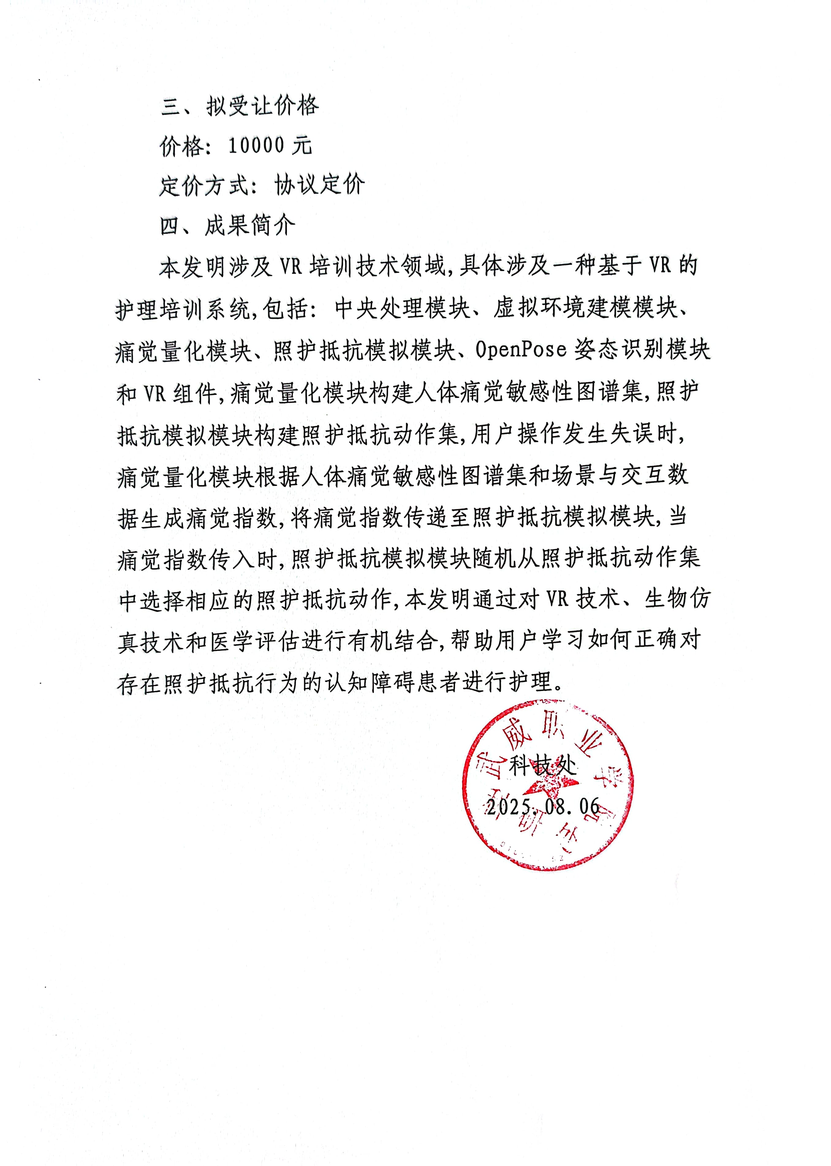 關(guān)于《一種基于VR的護(hù)理培訓(xùn)系統(tǒng)》科技成果轉(zhuǎn)化…