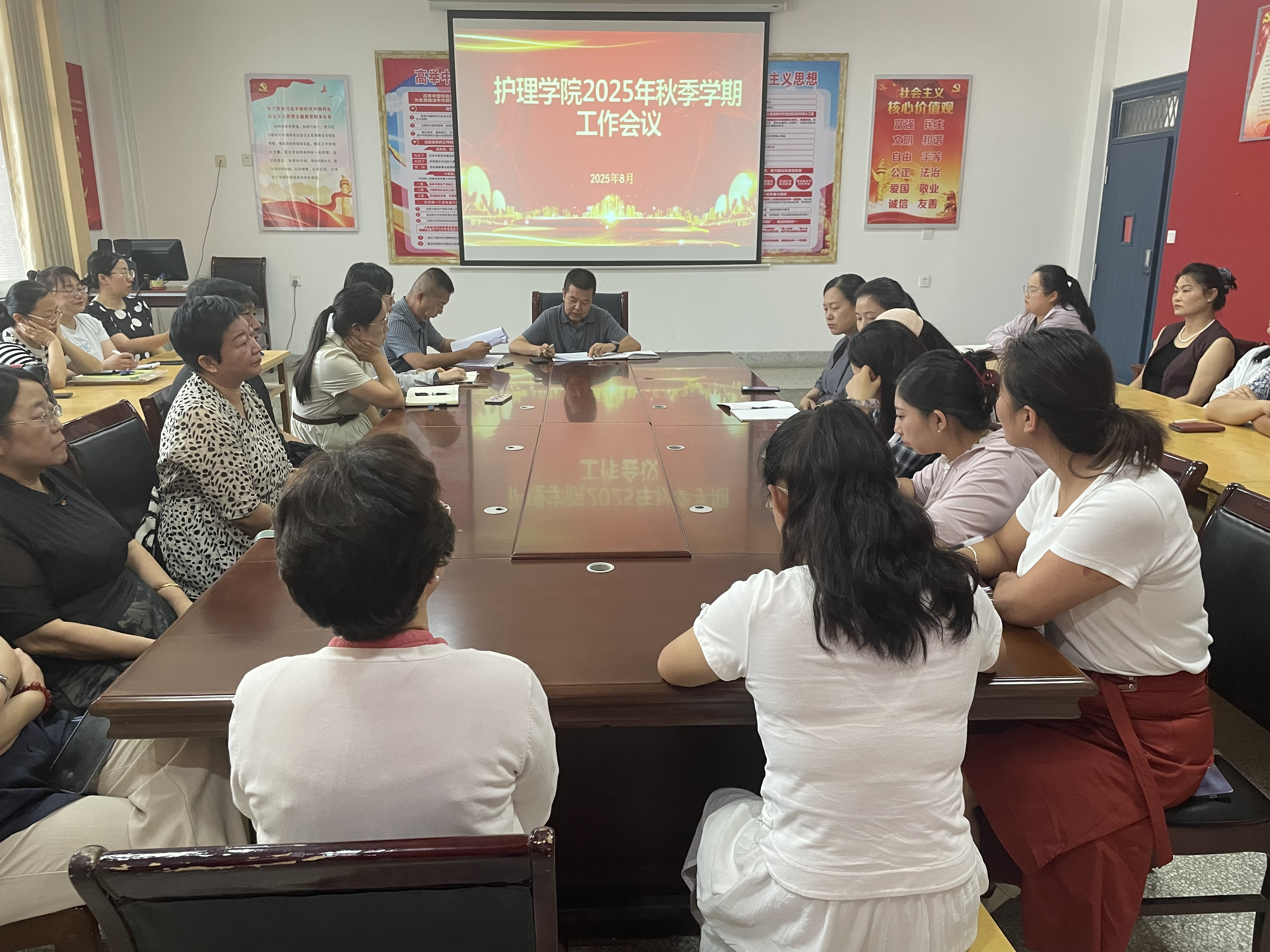 8月23日,護理學院召開專題會議,傳達學習學校2025年秋季新學期工作會議精神,研究安排護理學院2025年秋季學期各項重點工作任務。學院領導班子成員、全體教職工參加會議。