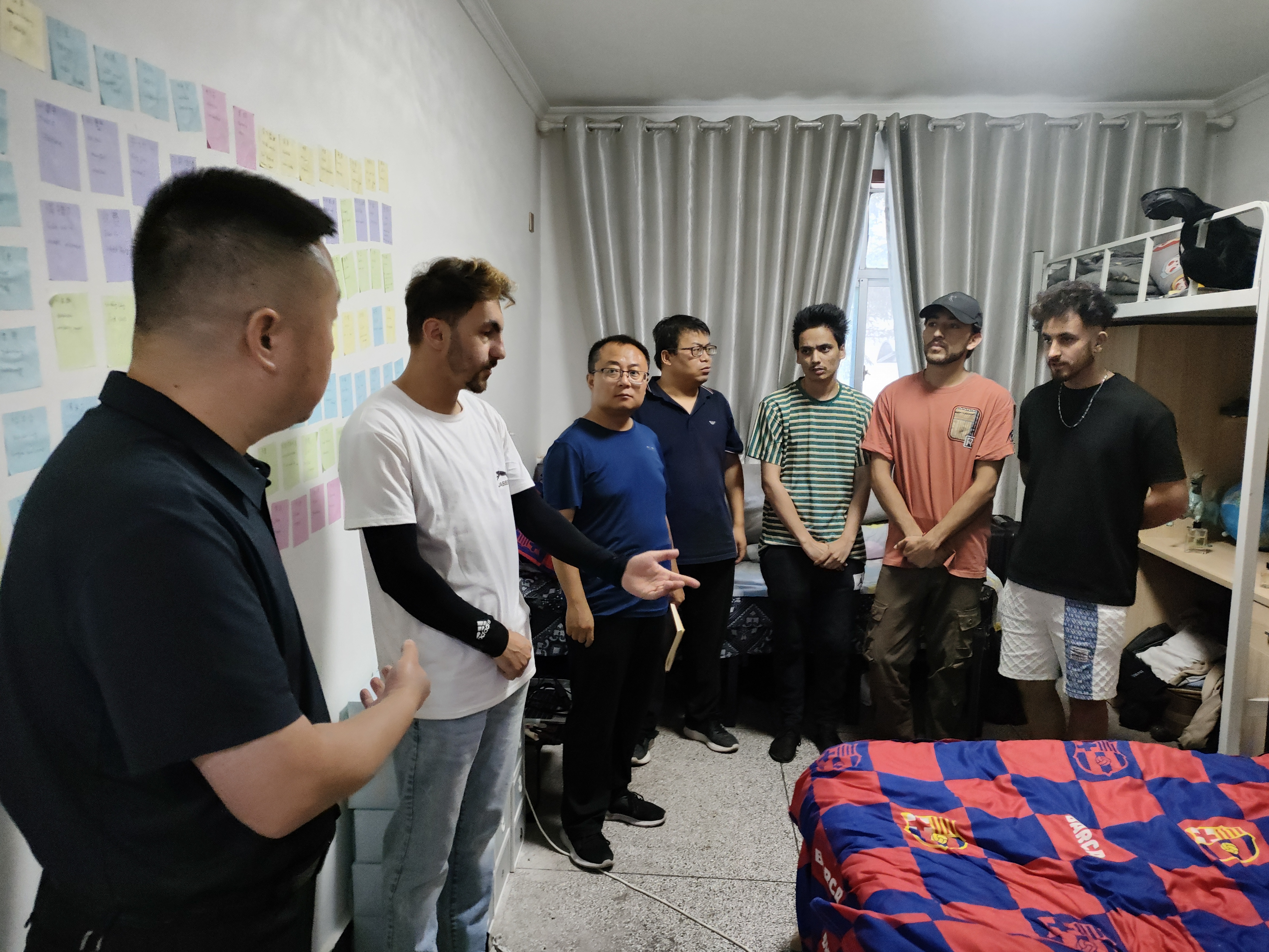 在新學期開學之際,國際合作交流處負責人帶領部門全體教師深入留學生宿舍,開展安全衛(wèi)生專項檢查,實地了解留學生開學準備情況。