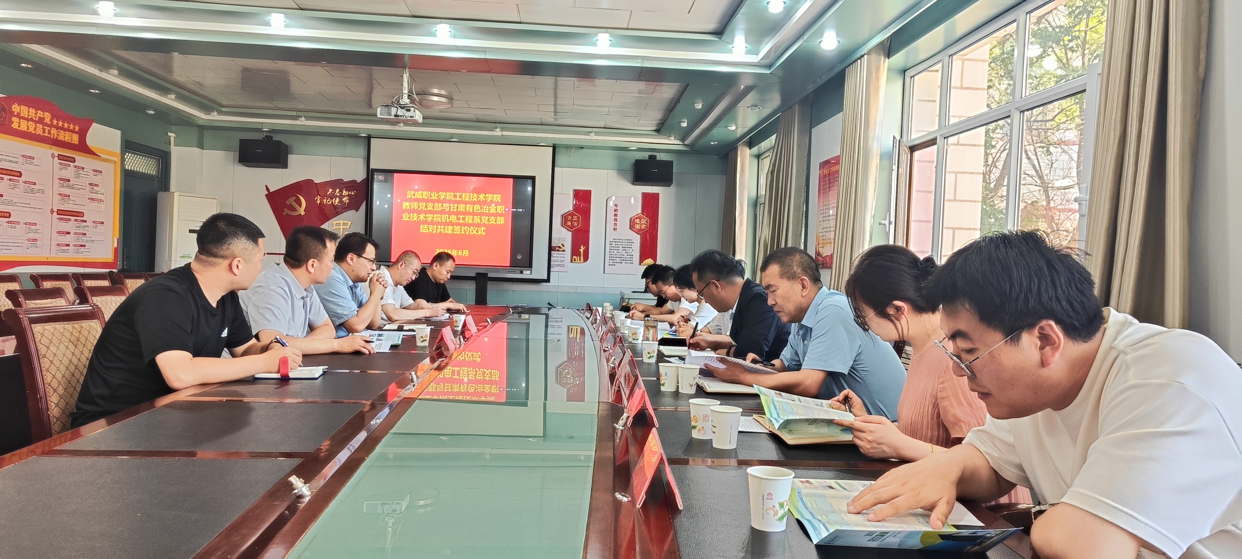 為進一步加強黨組織建設(shè),提升黨員的政治素養(yǎng)和黨性修養(yǎng),6月11日,學(xué)校工程技術(shù)學(xué)院教師黨支部和甘肅有色冶金職業(yè)技術(shù)學(xué)院機電工程系黨支部結(jié)對共建簽約儀式在博學(xué)樓黨員活動室舉行。甘肅有色冶金職業(yè)技術(shù)學(xué)院組織部部長高立兵、督導(dǎo)中心主任趙登峰、機電工程系黨支部書記侯婷婷,學(xué)校工程技術(shù)學(xué)院黨總支書記王鐸云、副院長徐生龍出席儀式,雙方黨員共計20人參加儀式。