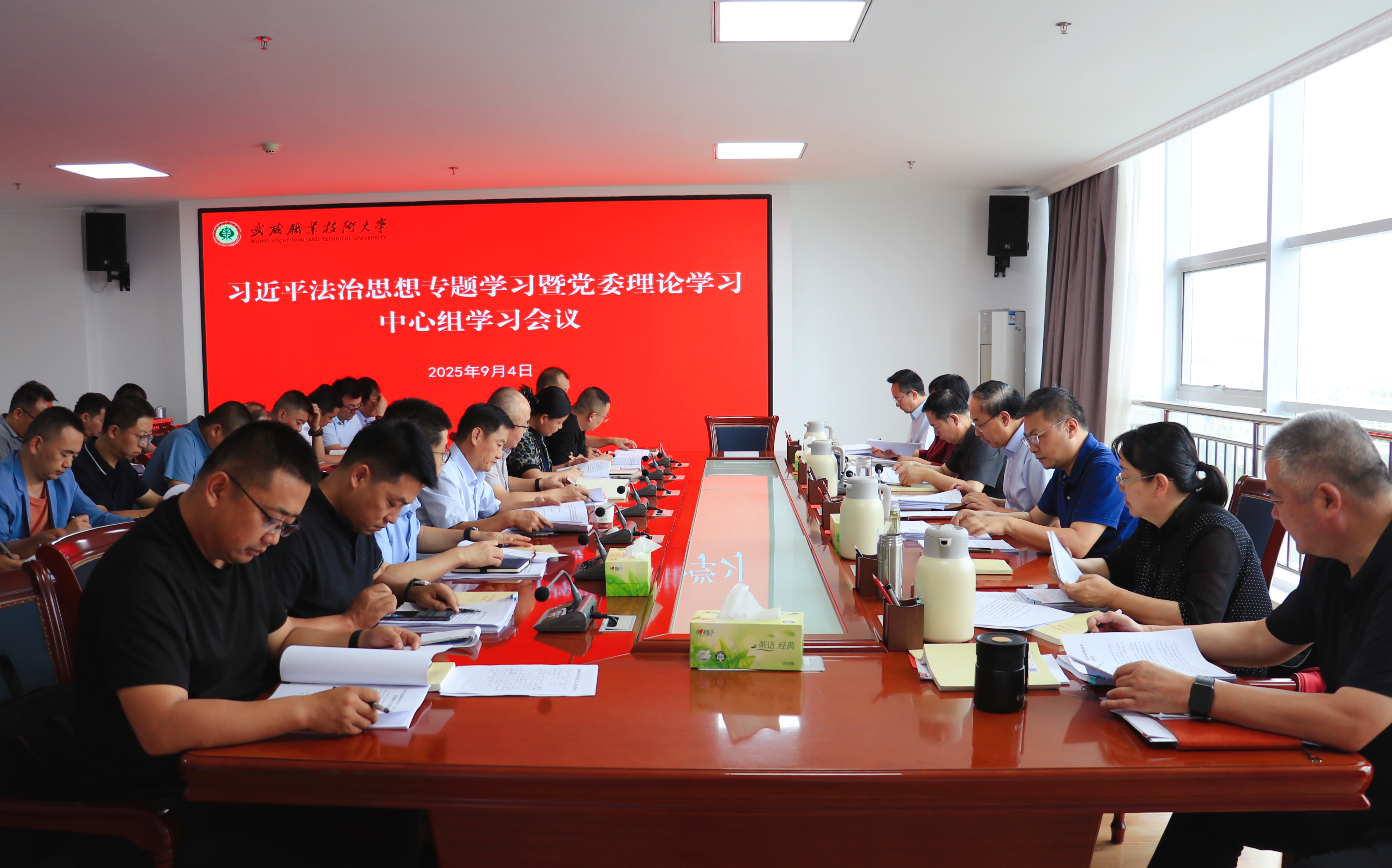 會(huì)議傳達(dá)學(xué)習(xí)習(xí)近平總書記在紀(jì)念中國(guó)人民抗日戰(zhàn)爭(zhēng)暨世界反法西斯戰(zhàn)爭(zhēng)勝利80周年大會(huì)上的重要講話、習(xí)近平總書記在2025年第17期《求是》雜志發(fā)表的重要文章《弘揚(yáng)偉大抗戰(zhàn)精神,向著中華民族偉大復(fù)興的光輝彼岸奮勇前進(jìn)》;專題學(xué)習(xí)習(xí)近平法治思想,主要傳達(dá)學(xué)習(xí)《習(xí)近平論全面依法治國(guó)》《習(xí)近平法治思想學(xué)習(xí)綱要》《習(xí)近平法治思想學(xué)習(xí)問答》等內(nèi)容;傳達(dá)學(xué)習(xí)法律法規(guī)和教育法規(guī)等相關(guān)內(nèi)容;校黨委理論學(xué)習(xí)中心組成員圍繞習(xí)近平法治思想,緊密結(jié)合思想和工作實(shí)際,深入開展了交流研討。