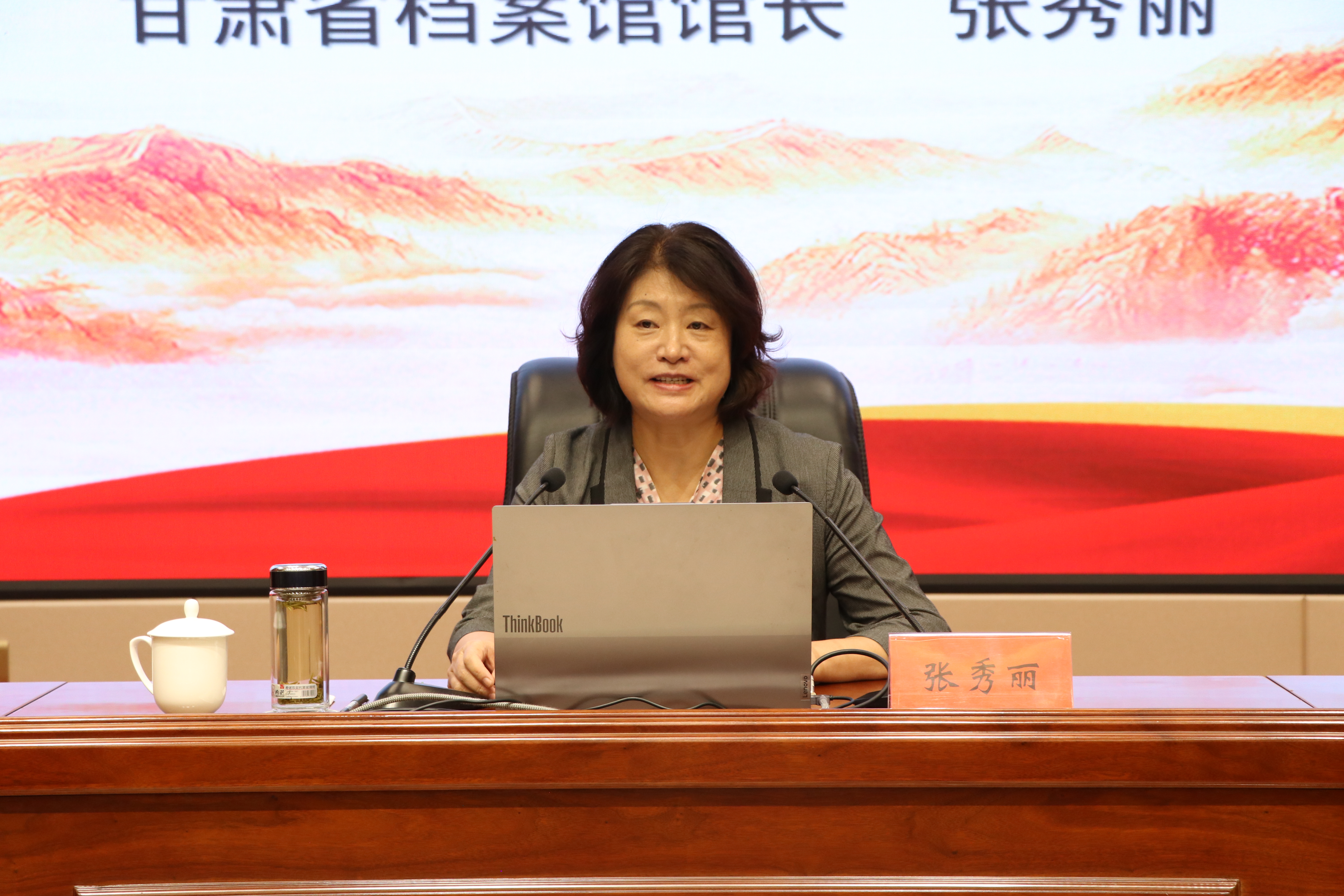 張秀麗結(jié)合自身從事檔案管理和文化研究的豐富經(jīng)驗,從檔案“存史、資政、育人”根本任務出發(fā),通過大量珍貴檔案文獻和歷史案例,系統(tǒng)闡述了檔案在記錄民族苦難輝煌、服務當代治國理政、培育時代新人中的重要作用。報告中,她以館藏漢代簡牘、革命烈士叢德滋00001號烈屬證、民勤治沙檔案、甘肅地震檔案等一批具有歷史代表性和地域特色的檔案為載體,帶領師生穿越時空,感受中華民族生生不息的精神力量,深刻解讀“勿忘昨天的苦難輝煌,無愧今天的使命擔當,不負明天的偉大夢想”的時代內(nèi)涵。