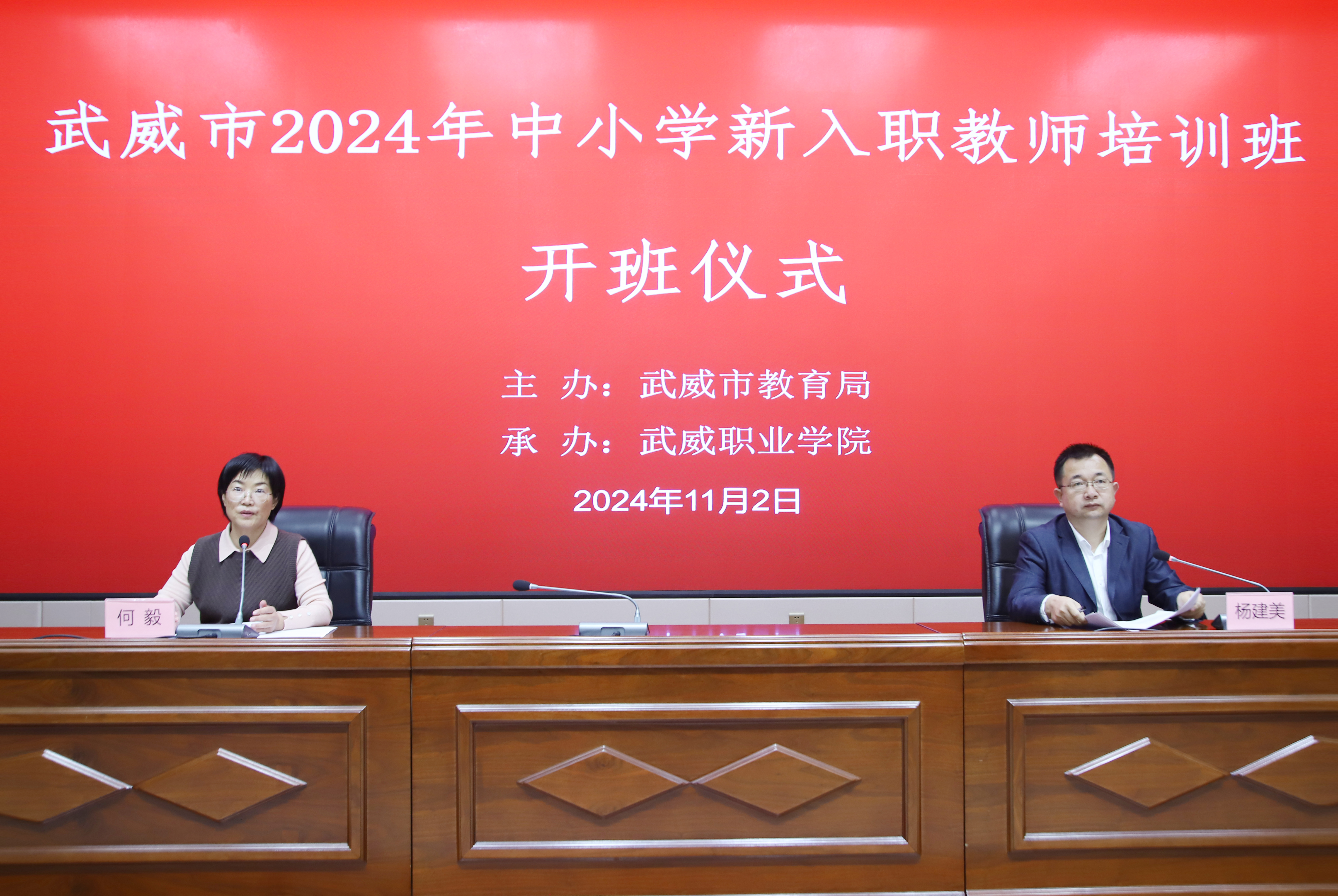 11月2日,由武威市教育局主辦,我校承辦的“武威市2024年中小學(xué)新入職教師培訓(xùn)班”在學(xué)生發(fā)展中心菁英廳順利開班,來自武威市三縣一區(qū)的125名新入職中小學(xué)教師參加培訓(xùn)。學(xué)校黨委委員、副校長何毅出席開班式,繼續(xù)教育學(xué)院黨支部書記、院長楊建美主持開班式。