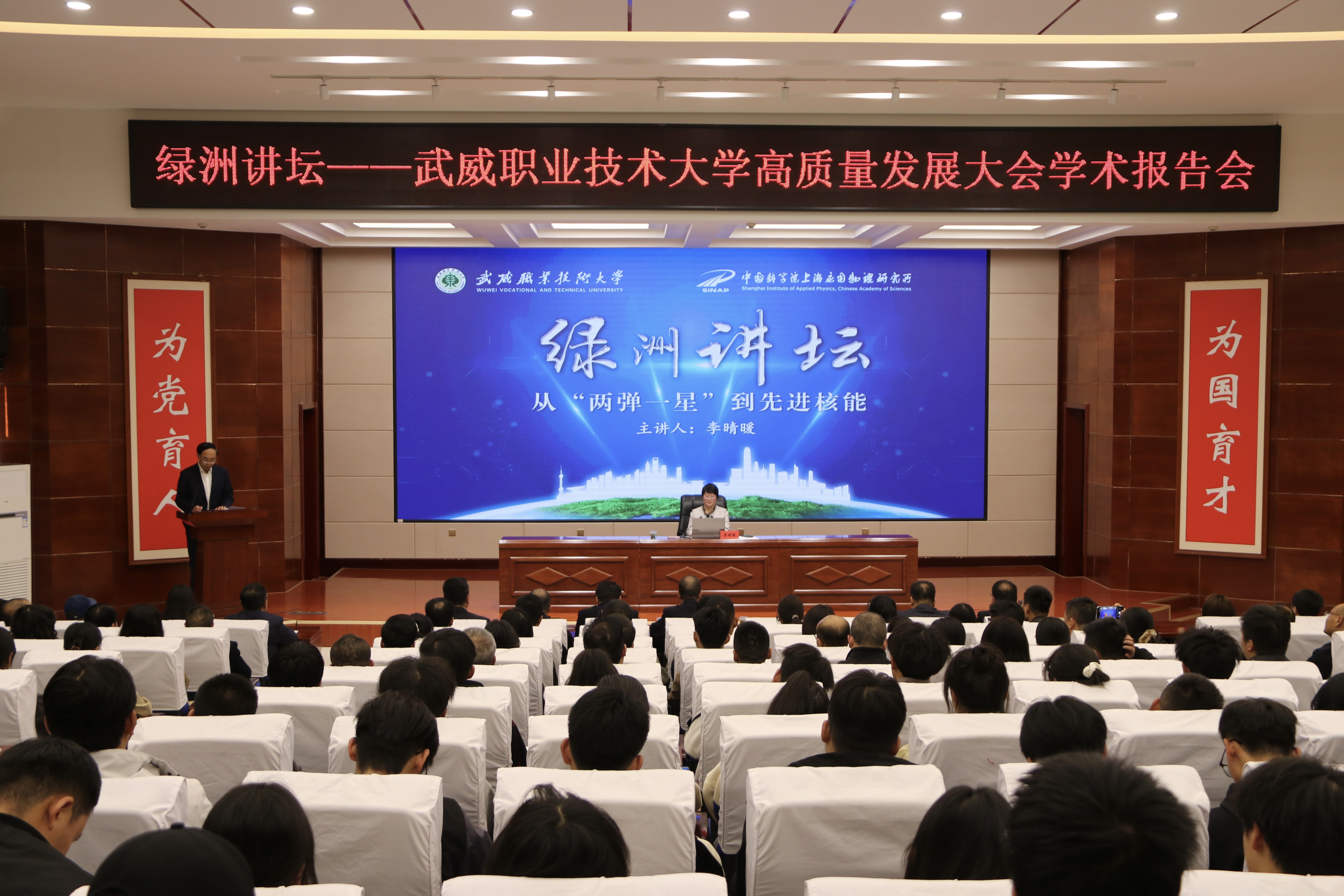 10月12日下午,中國科學院上海應用物理研究所黨委書記、副所長李晴暖研究員,受邀做客武威職業(yè)技術大學“綠洲講壇”,以《從“兩彈一星”到先進核能》為題,為該校220余名師生代表帶來專題學術報告。