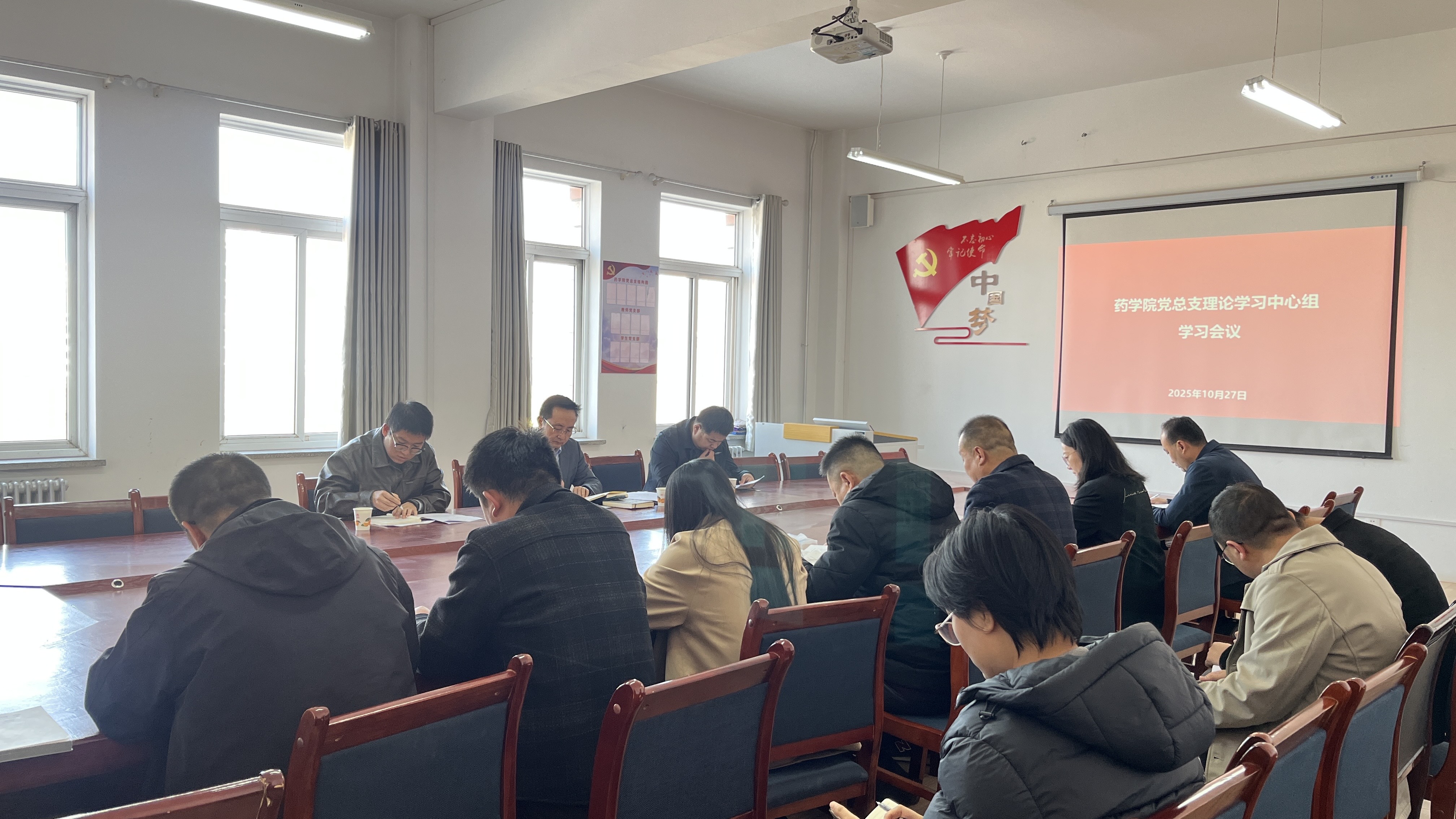 10月27日,藥學院黨總支召開理論學習中心組學習會議,開展《習近平談治國理政》(第五卷)專題學習。學校黨委委員、組織部部長任陶列席會議并作點評指導,學院黨總支理論學習中心組全體成員參加。藥學院黨總支書記蔡柱山主持會議。