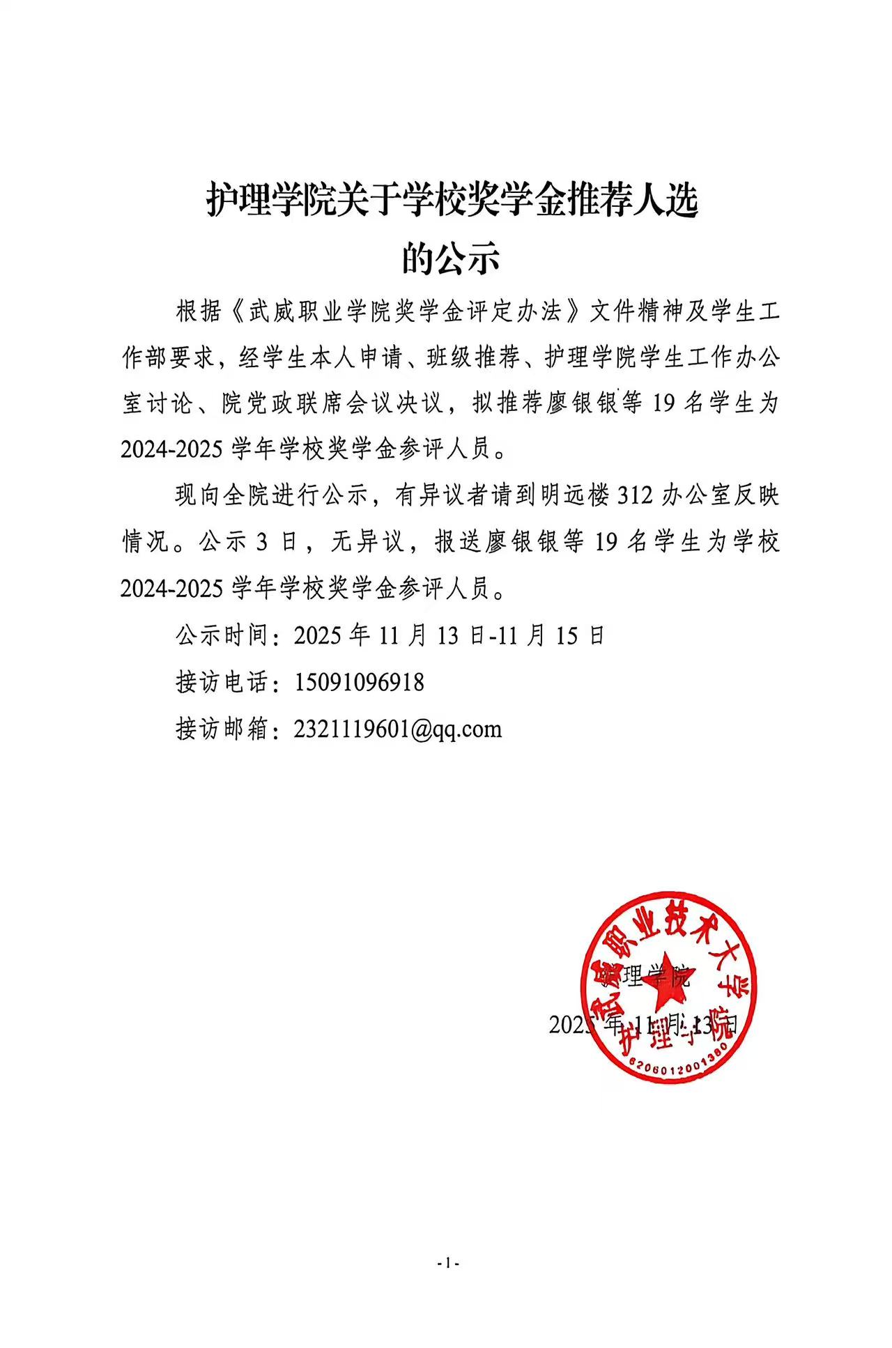 護(hù)理學(xué)院關(guān)于2025年國家助學(xué)金獲評(píng)人選的公示