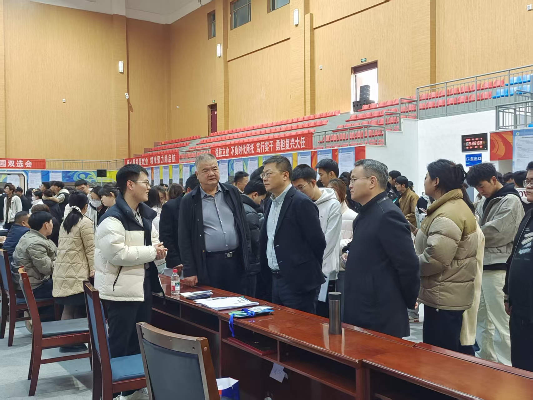 11月13日,校園招聘雙選會(huì)在學(xué)校體育館隆重舉行。校長(zhǎng)李海軍、副校長(zhǎng)王守云、伍國(guó)強(qiáng)親臨現(xiàn)場(chǎng)指導(dǎo)工作。李海軍詳細(xì)了解本屆畢業(yè)生的招聘需求與市場(chǎng)動(dòng)向,走訪(fǎng)多家用人單位展位并聽(tīng)取企業(yè)對(duì)學(xué)校人才培養(yǎng)的寶貴意見(jiàn)。同時(shí),與應(yīng)聘學(xué)生進(jìn)行親切交流,勉勵(lì)畢業(yè)生們要樹(shù)立正確的擇業(yè)觀(guān),立足本職,服務(wù)社會(huì),將個(gè)人成長(zhǎng)融入國(guó)家發(fā)展大局。