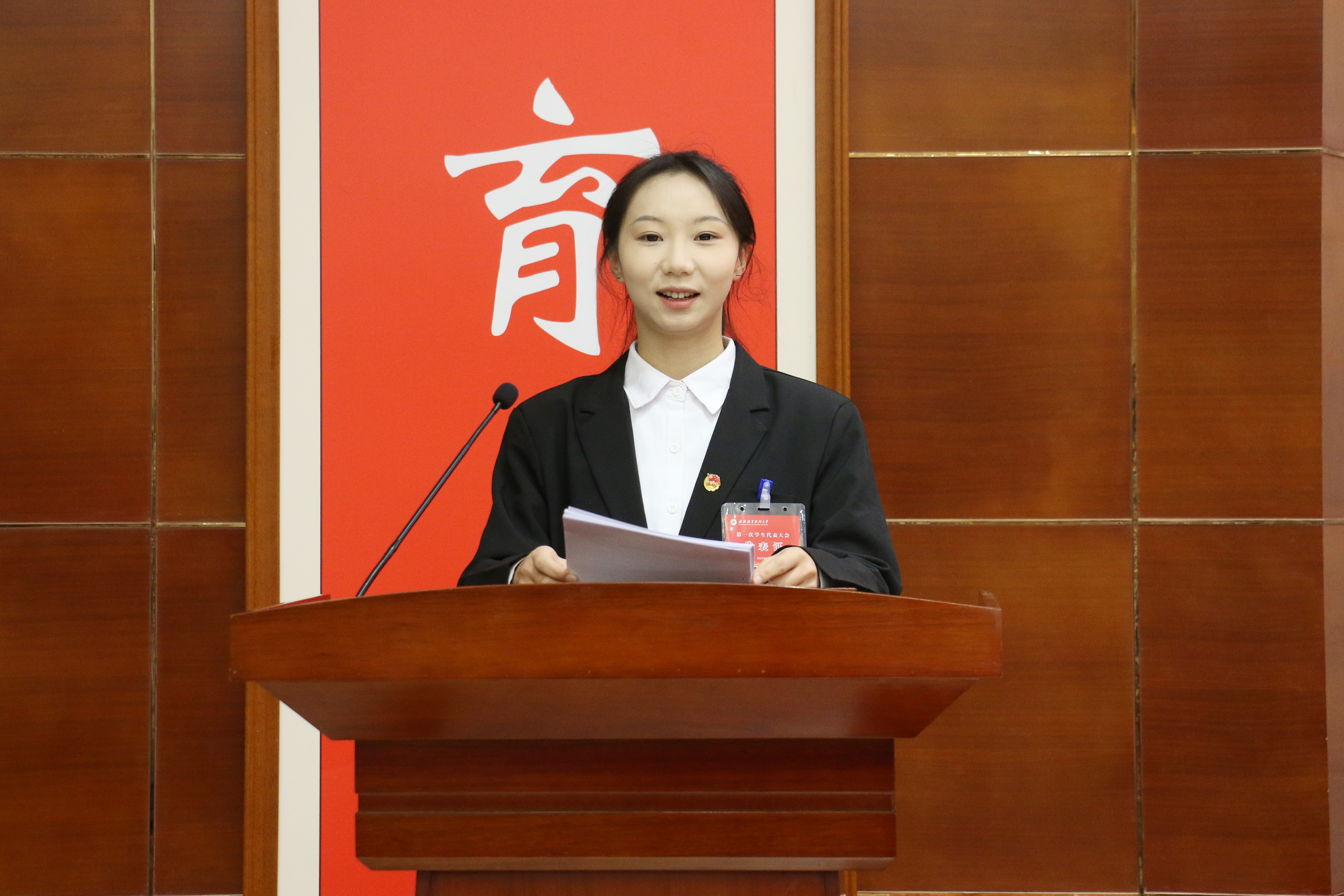 學(xué)校學(xué)生會(huì)主席團(tuán)成員李悅同學(xué)代表第十一屆學(xué)生會(huì)委員會(huì)向大會(huì)作題為《奮楫篤行啟新程 挺膺擔(dān)當(dāng)筑夢行,團(tuán)結(jié)帶領(lǐng)廣大同學(xué)在建設(shè)特色鮮明的高水平職業(yè)技術(shù)大學(xué)中貢獻(xiàn)青春力量》的工作報(bào)告。