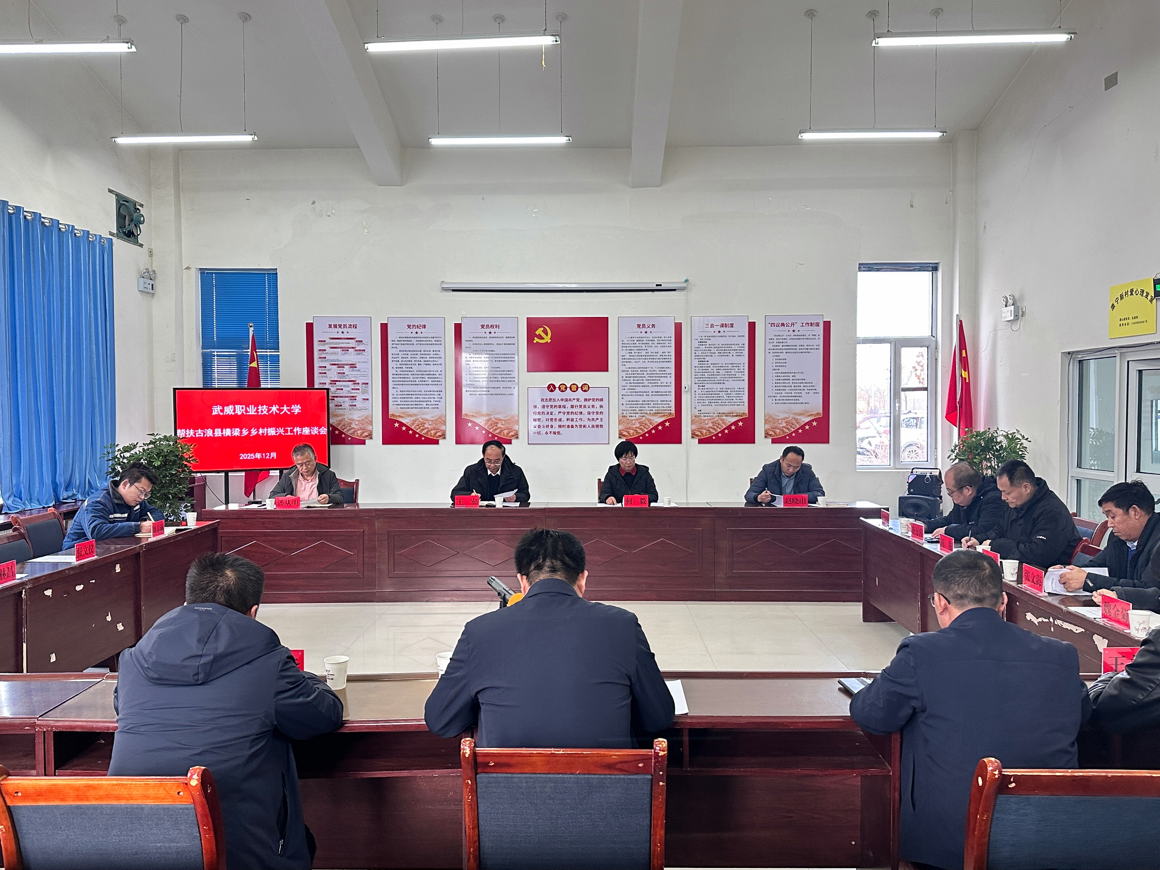 12月9日,黨委書記王宏帶隊(duì)到古浪縣橫梁鄉(xiāng)幸福新村、康寧新村,實(shí)地調(diào)研鄉(xiāng)村振興幫扶項(xiàng)目進(jìn)展,并召開校地幫扶工作座談會(huì)。黨委委員、副校長(zhǎng)何毅,以及校工會(huì)、校辦企業(yè)泰豐新能源有限責(zé)任公司相關(guān)負(fù)責(zé)人參加座談會(huì)。