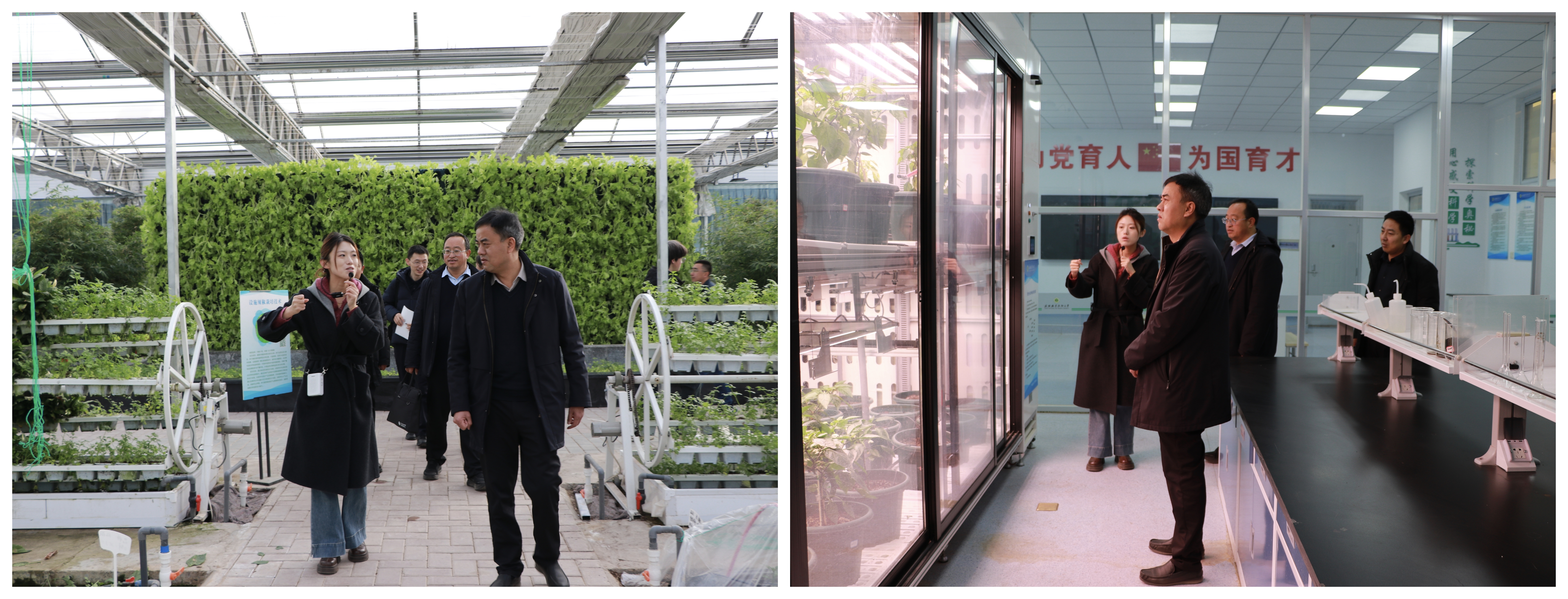 調研期間,莊浪職業(yè)教育中心一行四人先后參觀了農產品質量安全與檢測實訓室、智慧設施農業(yè)實訓室、現(xiàn)代農業(yè)生產性實訓基地等多個實驗實訓場所。學院專業(yè)教師詳細介紹了各實訓室的建設標準、設備配置、教學功能及實訓課程開展情況,展示了學院在教育教學方面取得的成果。在現(xiàn)代農業(yè)生產性實訓基地,雙方圍繞中高職貫通培養(yǎng)、實驗實訓室建設等內容深入交流,申賓德介紹了學院專業(yè)特色、課程體系、師資隊伍及學生升學就業(yè)等方面的內容。王瑾楠結合本校專業(yè)辦學實際,交流了在貫通培養(yǎng)過程中遇到的課程銜接、人才培養(yǎng)標準等問題。