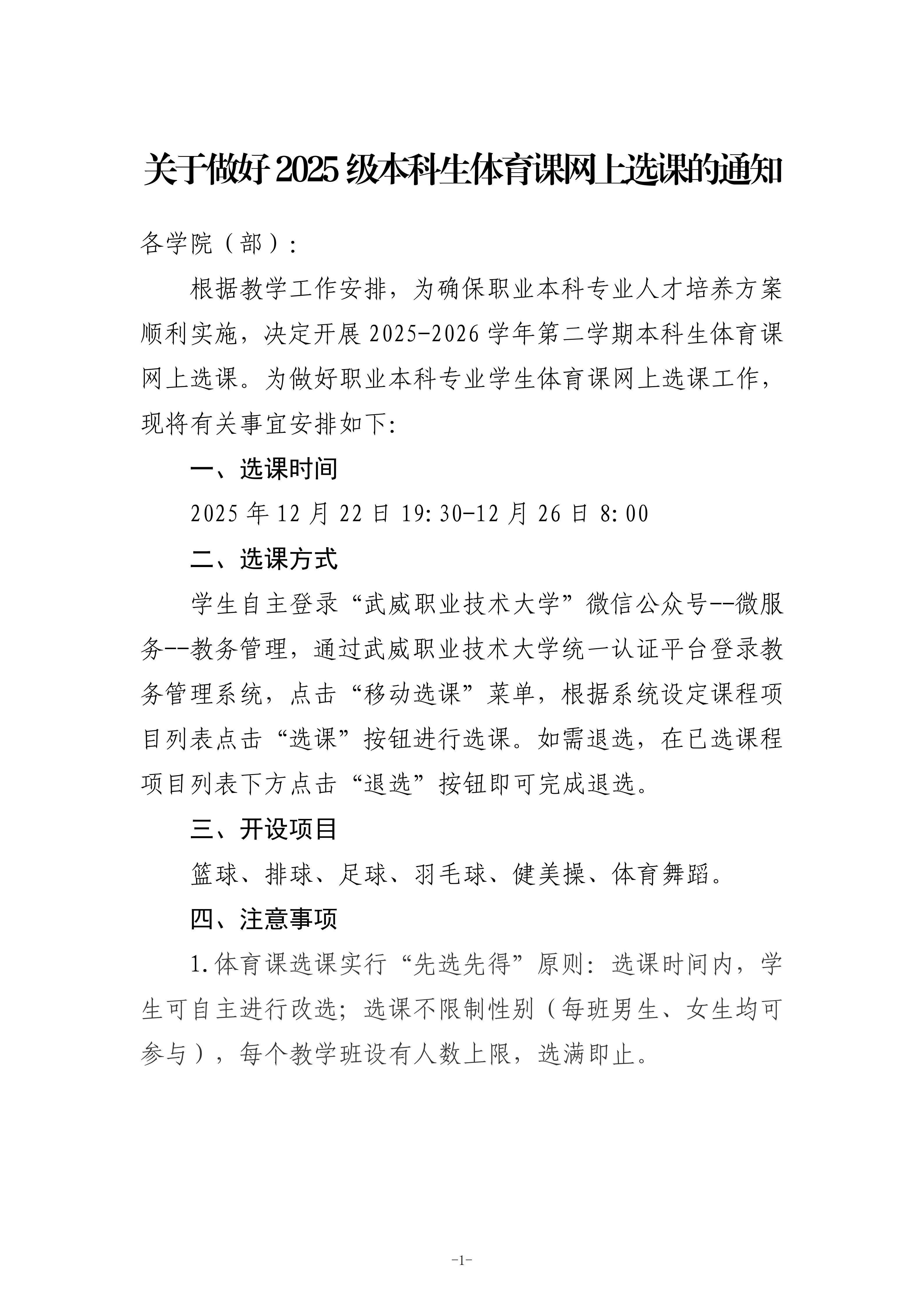 關(guān)于做好2025級(jí)本科生體育課網(wǎng)上選課的通知