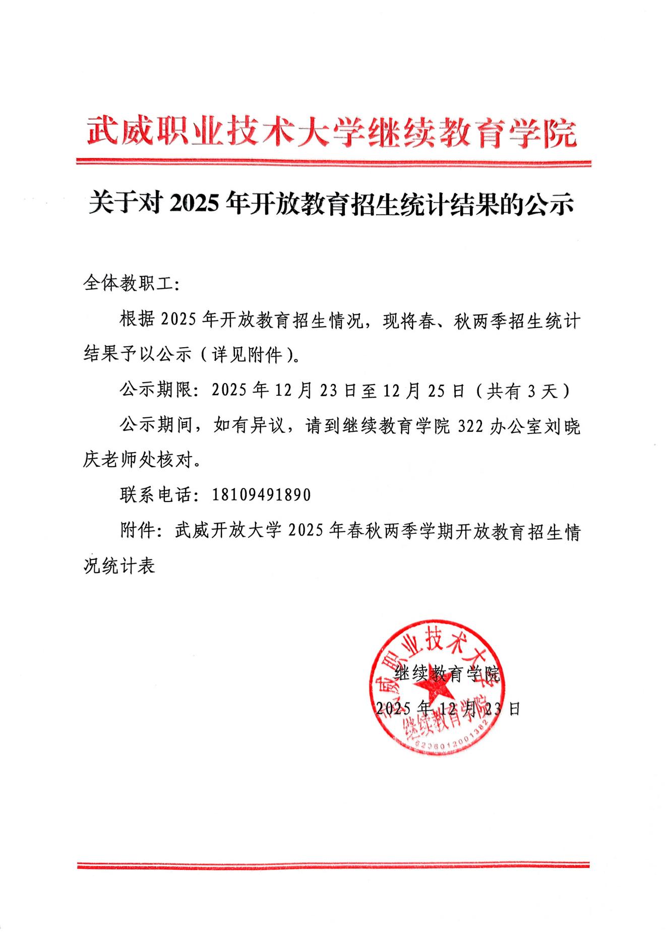 關(guān)于對(duì)2025年開放教育招生統(tǒng)計(jì)結(jié)果的公示