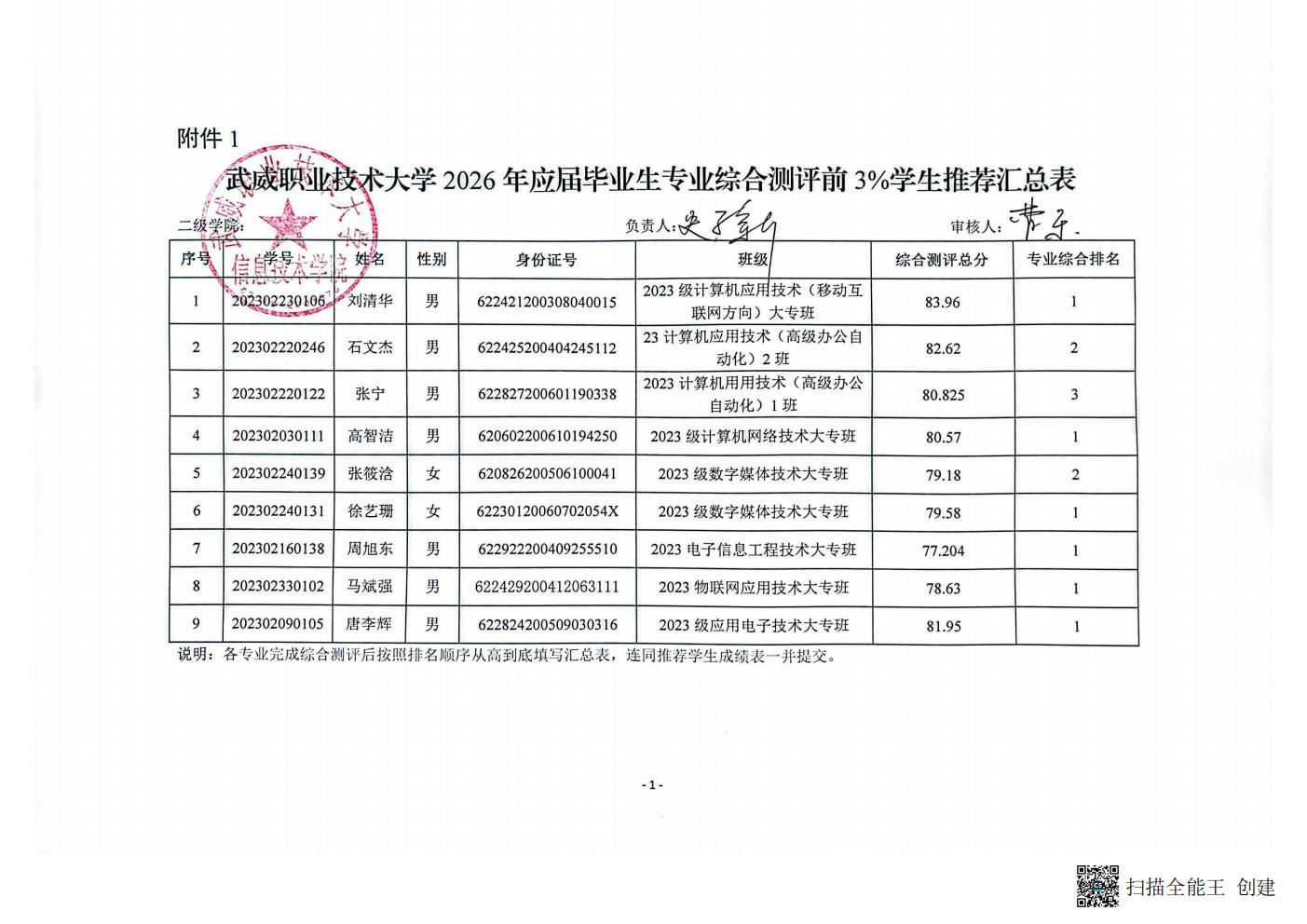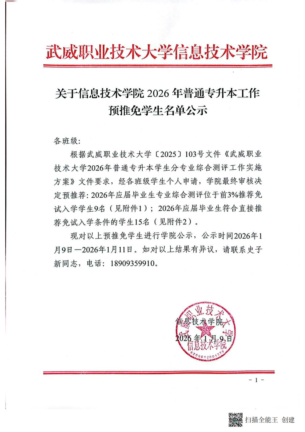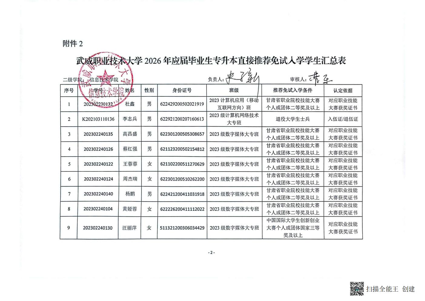 關于信息技術學院2026年普通專升本工作預推免學生名單公示
