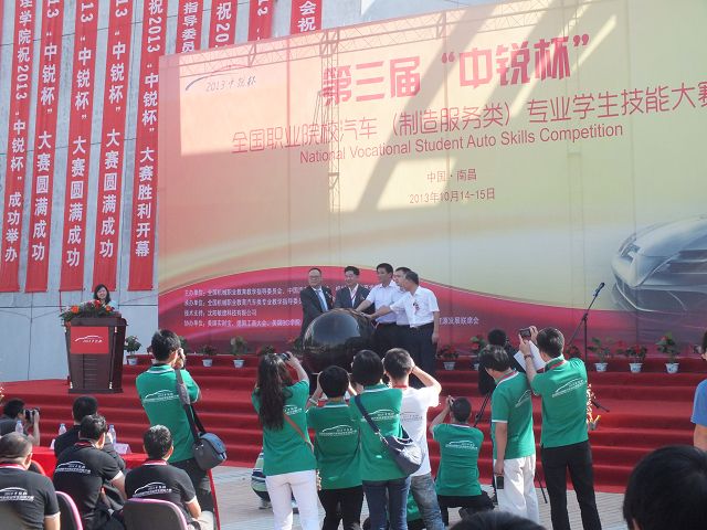 2013年10月14—15日,第三屆“中銳杯”全國職業(yè)院校汽車(制造服務類)專業(yè)學生技能大賽”總決賽在江西南昌舉行。全國近百所院校三百多名學生參加了此次大賽。本次大賽由全國機械職業(yè)教育教學指導委員會、中國汽車流通協(xié)會、機械工業(yè)教育發(fā)展中心共同主辦,全國機械職業(yè)教育汽車類專業(yè)教學指導委員會、江西現(xiàn)代職業(yè)技術(shù)學院承辦。本次大賽裁判和評委均由汽車行業(yè)的各大代表以及資深企業(yè)營銷專家擔任,因此評選也將更加注重實踐性和專業(yè)性。