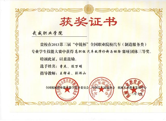 我院學生在第三屆“中銳杯”全國職業(yè)院校汽車專業(yè)學生技能大賽中獲獎