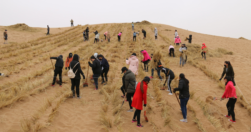 3月12日,在第39個“植樹節(jié)”到來之際,按照市上統(tǒng)一安排,學(xué)院領(lǐng)導(dǎo)帶隊400余名師生前往古浪縣陸港北部沙漠腹地開展義務(wù)壓沙勞動,勞動現(xiàn)場,學(xué)院領(lǐng)導(dǎo)和師生們不畏春寒,在技術(shù)人員的指導(dǎo)下,揮锨鏟沙、蒲草培沙、勞動現(xiàn)場熱火朝天,整齊的稻草方格逐漸覆蓋了一個個沙丘。通過一天的勞動,圓滿完成了壓沙任務(wù),以實際行動為保護環(huán)境、建設(shè)生態(tài)文明美麗武威做出了應(yīng)有貢獻。