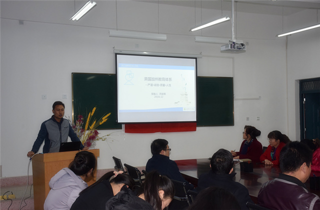 晏素珍就2016年我系教師培訓(xùn)工作做了簡(jiǎn)單回顧與總結(jié),隨后蔡飛從美國(guó)文化入手,介紹了他們?cè)诿绹?guó)加利福尼亞州社區(qū)學(xué)院學(xué)習(xí)的基本情況,分享了實(shí)踐教育教學(xué)的信息、理念、方法、感受。龔建軍從美國(guó)教育體系著手,分享了他在美國(guó)加利福尼亞州社區(qū)學(xué)院參加的“了解美國(guó)現(xiàn)代教育教學(xué)理念,全面提高骨干教師專(zhuān)業(yè)建設(shè)與實(shí)踐能力”培訓(xùn)中的所學(xué)所聞,重點(diǎn)介紹了美國(guó)職業(yè)教育體系和職業(yè)教育教學(xué)及學(xué)習(xí)模式。
